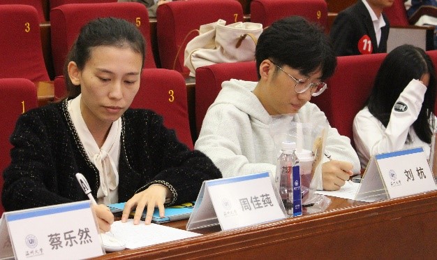 各参赛选手到场后根据抽签顺序,进行限时5分钟的演讲。每位上场演讲的同学都表现得十分精彩:李曼同学通过辛弃疾、雷锋、冰心、张桂梅等人的例子,呼吁我们学习他们坚定信念、执着坚定、无怨无悔的人生追求;杨文斌同学将姐姐如何凭借自己的努力走出大山、又如何毅然决然返回大山带领全村脱贫攻坚的故事倾情讲述,并且呼吁温大学子要“到祖国和人民最需要的地方去”;宋思语同学以细腻的文字讲述了在成长中的挣扎与思考,以自身的经历告诉我们拥有人生目标的同时也要接受平凡的自己,相信“眼望星空,脚踏实地”便是最好的状态。