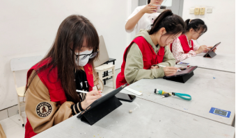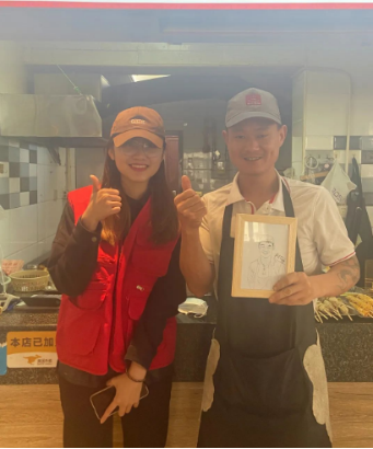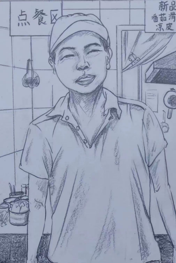 本次活动从报名开始就得到了同学们的关注与广泛参与,报名现场,来自20服设班的吴响笑同学说:“一直没有机会对身边的工作人员说声谢谢,这个活动我们用作品来表达情感真的很有意义。”活动中志愿者们不约而同地选择了学校保安叔叔、生活区宿管阿姨、餐厅工作人员、驿站小哥等作为创作对象。在征得同意后,志愿者们用写实或抽象的手法绘制了惟妙惟肖的专属画像,用画笔勾勒出劳动者灿烂的笑容以及辛勤工作的身影。