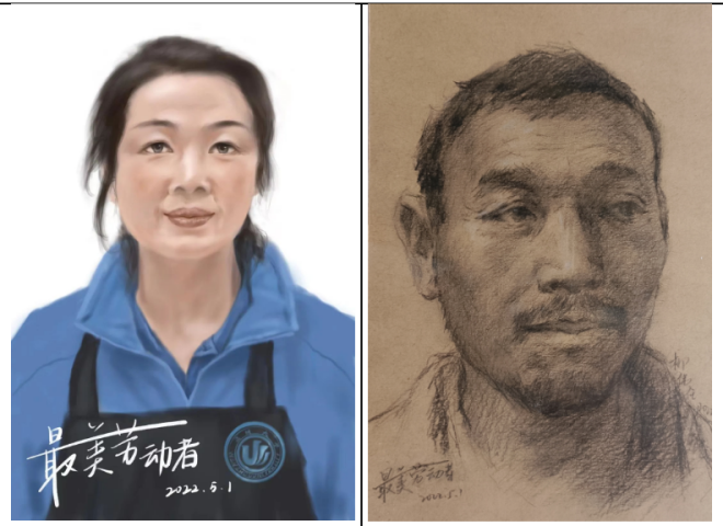 致敬劳动者:2022年“五一”国际劳动节来临,温大美院学子用画笔描绘身边劳动者最美丽的笑容,绘制出专属于他们的肖像画,让美好时光定格,致敬身边最美劳动者!