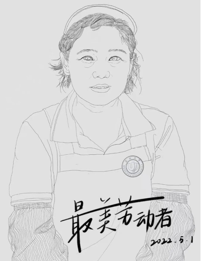 致敬劳动者:2022年“五一”国际劳动节来临,温大美院学子用画笔描绘身边劳动者最美丽的笑容,绘制出专属于他们的肖像画,让美好时光定格,致敬身边最美劳动者! 本次活动从报名开始就得到了同学们的关注与广泛参与,报名现场,来自20服设班的吴响笑同学说:“一直没有机会对身边的工作人员说声谢谢,这个活动我们用作品来表达情感真的很有意义。”活动中志愿者们不约而同地选择了学校保安叔叔、生活区宿管阿姨、餐厅工作人员、驿站小哥等作为创作对象。在征得同意后,志愿者们用写实或抽象的手法绘制了惟妙惟肖的专属画像,用画笔勾勒出劳动者灿烂的笑容以及辛勤工作的身影。 “画得实在是太像了!”收到劳动节礼物的宿管阿姨不禁赞叹。保安叔叔收到这份特别的礼物则是腼腆一笑,目光却是一直停留在自己的画像上。 绘画展示:下面让我们通过最美的笑容重新认识校园生活中的他们,感受他们的魅力风采。 每一个忙碌的身影都值得感激,每一份劳动都该得到应有的尊重,每一位敬业付出的劳动者都值得敬佩。 习近平总书记指出:“劳动是财富的源泉,也是幸福的源泉。人世间的美好梦想,只有通过诚实劳动才能实现;发展中的各种难题,只有通过诚实劳动才能破解;生命里的一切辉煌,只有通过诚实劳动才能铸就”。以辛勤劳动为荣,以好逸恶劳为耻。作为社会主义的建设者和接班人,我们要做勇于追梦的劳动者,在劳动和奉献中贡献青春智慧、绽放青春光彩、实现青春价值!