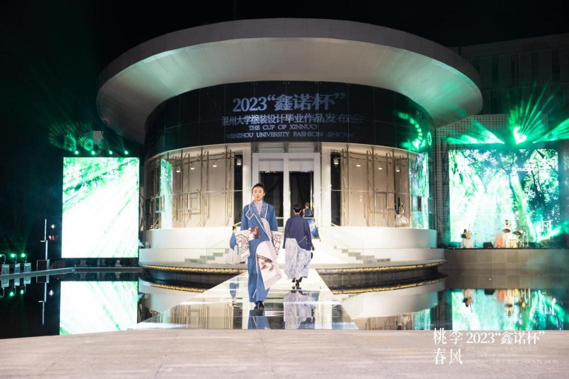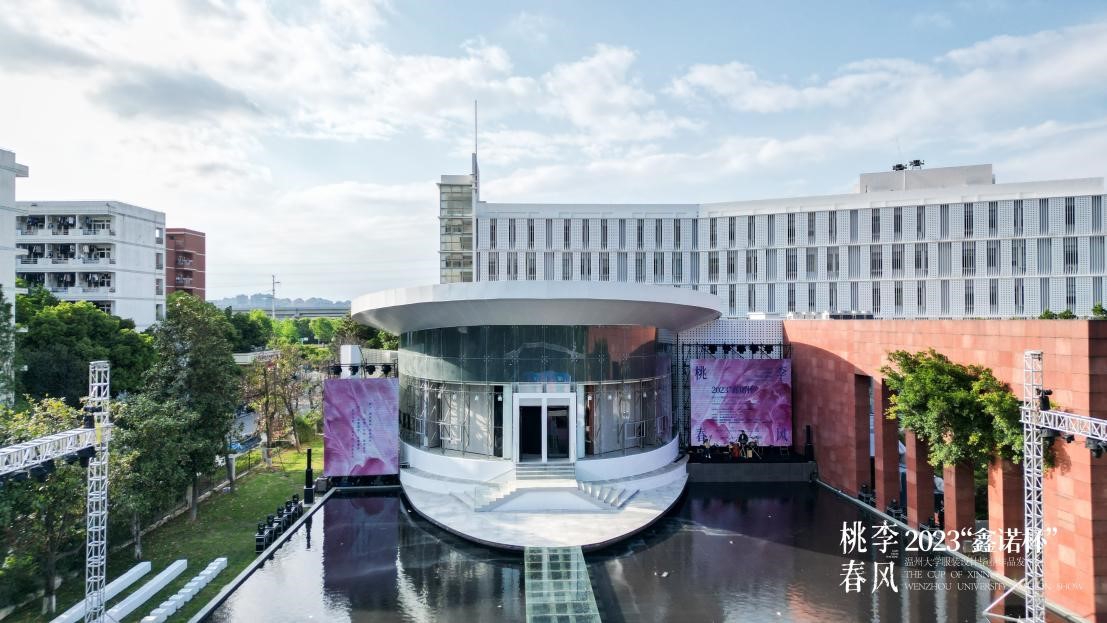 2023年4月20日晚,一场别开生面的时装秀在性爱视频 美术馆水上T台隆重举办。中共温州市委宣传部副部长曾伟、温州市文学艺术界联合会党组书记周新波、温州市文化广电旅游局副局长李方喜温州市经济和信息化局总工程师丁建忠等市有关领导作为嘉宾亲临现场,性爱视频 副校长蔡曙光、纪委书记杨林书、副校长王舜、副校长潘玉驹、性爱视频 院长谢子静等出席活动。此外,还有来自温州各企业家代表、艺术界的名家、设计师、时尚达人,媒体界的朋友们纷纷到场支持,现场近500人,座无虚席。