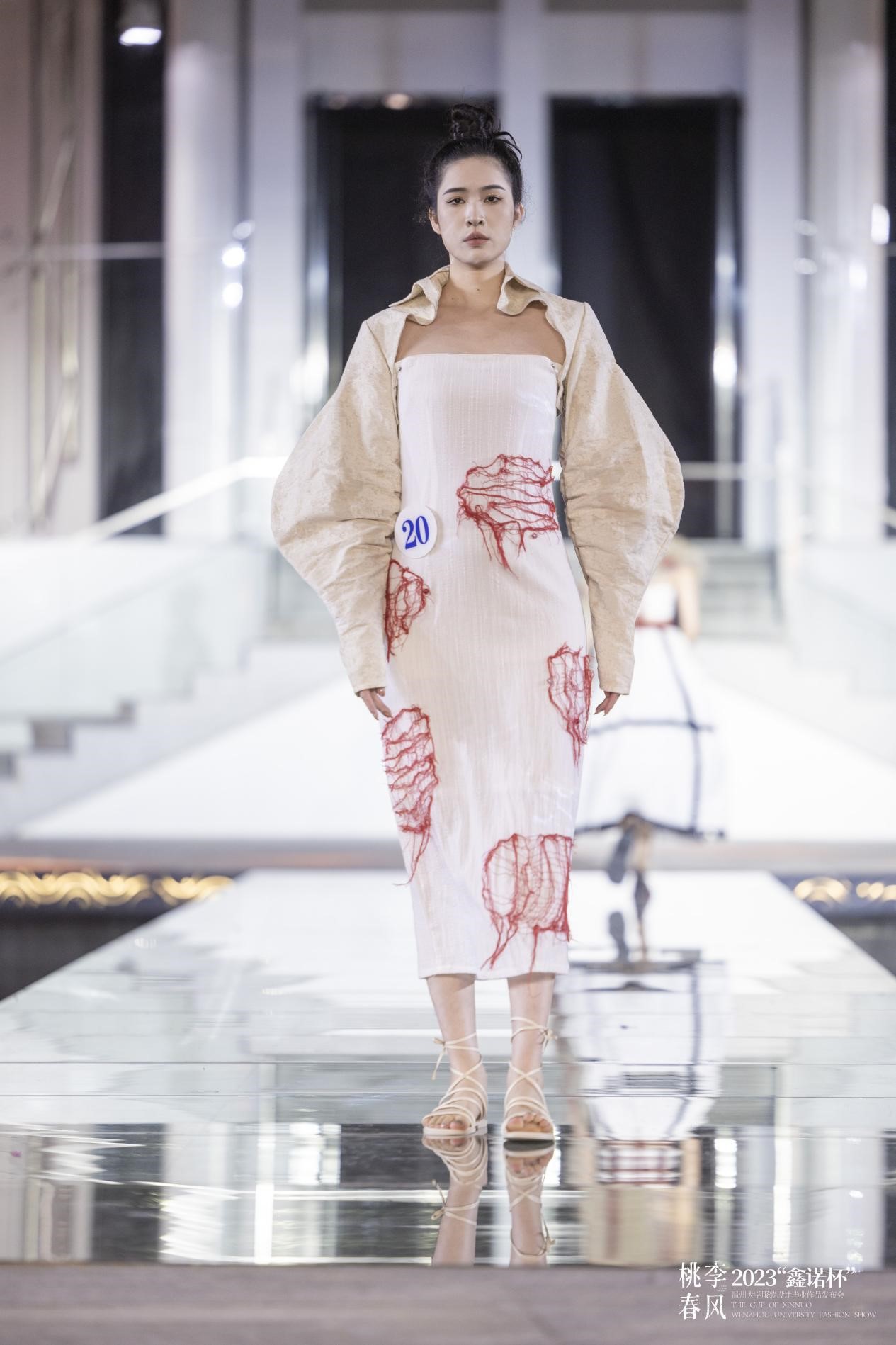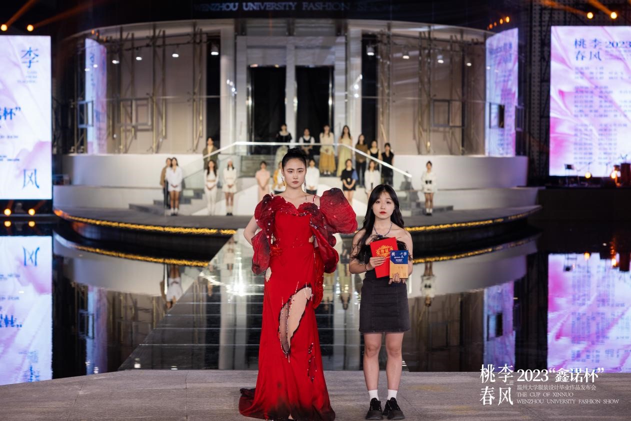 2023年4月20日晚,一场别开生面的时装秀在性爱视频 美术馆水上T台隆重举办。中共温州市委宣传部副部长曾伟、温州市文学艺术界联合会党组书记周新波、温州市文化广电旅游局副局长李方喜温州市经济和信息化局总工程师丁建忠等市有关领导作为嘉宾亲临现场,性爱视频 副校长蔡曙光、纪委书记杨林书、副校长王舜、副校长潘玉驹、性爱视频 院长谢子静等出席活动。此外,还有来自温州各企业家代表、艺术界的名家、设计师、时尚达人,媒体界的朋友们纷纷到场支持,现场近500人,座无虚席。 这场时装秀不同于往年的毕业秀,是首次在高校的美术馆水上T台举行服装设计专业的毕业大秀。本次发布会以桃李春风为主题,由30位性爱视频 服装与服饰设计即将毕业的学生主导,在创意和时尚的碰撞中,探寻未来的温州时尚发展之路。 立足当下 畅想未来 性爱视频 副校长王舜就本次毕业秀发表了致辞,王舜指出性爱视频 充分发挥在鞋革服装等方面优势特色,依托服装与服饰设计国家级一流专业等优势载体,探索重内涵、强实践的人才培养模式,在人才培养、艺术创作和服务地方文化繁荣等方面取得了丰硕成果,为助力温州争创“中国时尚服饰中心城市”、打造“国际化的时尚产业创新先行区”作出了积极贡献,在未来温大服装设计专业的学子也一定能为社会做出更多的贡献。 波光鳞动 艺术定格 在清澈的水面上,模特们身着设计师们的时尚作品,婀娜多姿的走过,展示出了独特的视觉效果。一年一度的服装毕业作品发布会具有重要的意义和作用,是学院人才培养质量的一次重要展示,也是温州服装设计师们交流思想“时尚盛宴”。今年的赛事由海宁鑫诺服饰有限公司支持,为本届30位性爱视频 服装设计专业的毕业生提供了一次展示自我和超越自我的机会。本次发布会共有90套作品展出,是学子们对时装设计和艺术观念的一次创新尝试,希望为大众带来更多不同寻常的时尚和艺术体验。 新潮活力 激情澎湃 本次发布会共分四大篇章发布会共分四大篇章,是《种子——厚爱加身,身披铠甲》、《水——澄澈轻快,渗透浸养》、《阳光——欢歌跳跃,花蝶蹁跹》、《参天大树——天地承托,群山巍峨》,作品风格各异,囊括希望与克制、未来和复古、浪漫而先锋、 都市及民俗、前卫融嬉皮、深邃携空灵、觉醒搭混沌等各类元素,展示了新锐设计师对服装艺术的理解和追求,用青春浪漫的遐想,用布帛为载体以创新的剪裁构塑出服装艺术新形象,颠覆人们对服饰的认知,拓展了服装文化的内涵。 大咖云集 异彩纷呈 本次发布会邀请了四位重量级评委,他们是海宁鑫诺服饰的董事长刘军先生和浙江中胤时尚股份有限公司的董事长倪秀华女士,意大利欧洲设计学院的教授兼时尚设计师的菲利波·斯特拉达先生,还有温州服装商会的秘书长陈琦翔先生。 经专家评委评审,欧帅英的作品《破晓》最终摘得一等奖;赵子晴的作品《遇见神都》,林雨欣的作品《溯流光》系列作品获得二等奖;叶庆敏的作品《共生》,曾晨的作品《异世双生》,唐紫怡的作品《傀儡戏法》3套系列作品获得三等奖。每个获奖作品都凝聚着毕业生的灵感和心血,也代表着当代学生的朝气蓬勃。 获得一等奖的设计师欧帅英介绍,作品《破晓》灵感来源于《黑白魔女库伊拉》中火烧白袍这一经典片段,将华丽中带有破坏的艺术风格及夸张的礼服造型运用在本次设计当中,以浓郁的红色为色彩基调,在造型夸张的红色礼服上通过泼墨、灼烧等破坏面料的方式对礼服进行二次创作,来表达“破晓”这一主题,打破传统高级时装设计思维,使礼服有更多可能性,打造强烈的视觉冲击。 桃李不言 春风不语 桃李不言,下自成蹊。本次毕业展离不开服装设计学院的各位老师在背后的辛勤付出,他们带领着学子们克服重重困难,由懵懂慢慢走向成熟,直至他们能够走上社会,独当一面。 春风不语,即随本心。学子们从面对毕设的迷茫到一件件成品的产出,为梦想的奋斗只有开始,没有结束。这些作品是他们结束本阶段学习的最优秀的成果,也是进入下一阶段学习最好的敲门砖。