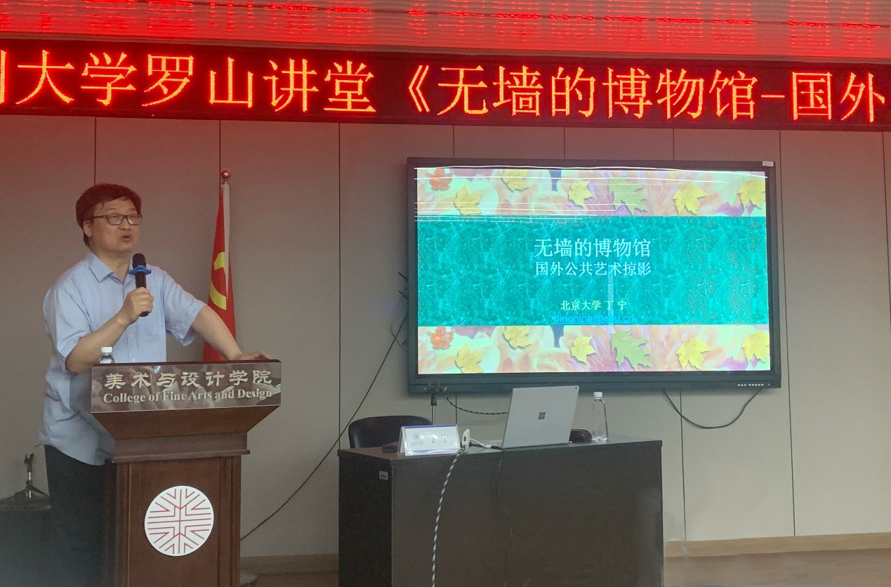 5月28日下午,北京大学艺术学院教授、博士生导师、教育部美术类专业教学指导委员会副主任委员丁宁教授莅临我校“罗山讲堂”,为广大师生带来“无墙的博物馆——国外公共艺术掠影”学术讲座。本场讲座系性爱视频 90周年校庆系列学术活动之一,由副院长顾任飞教授主持,学院教师、硕士生、本科生80多人参加。