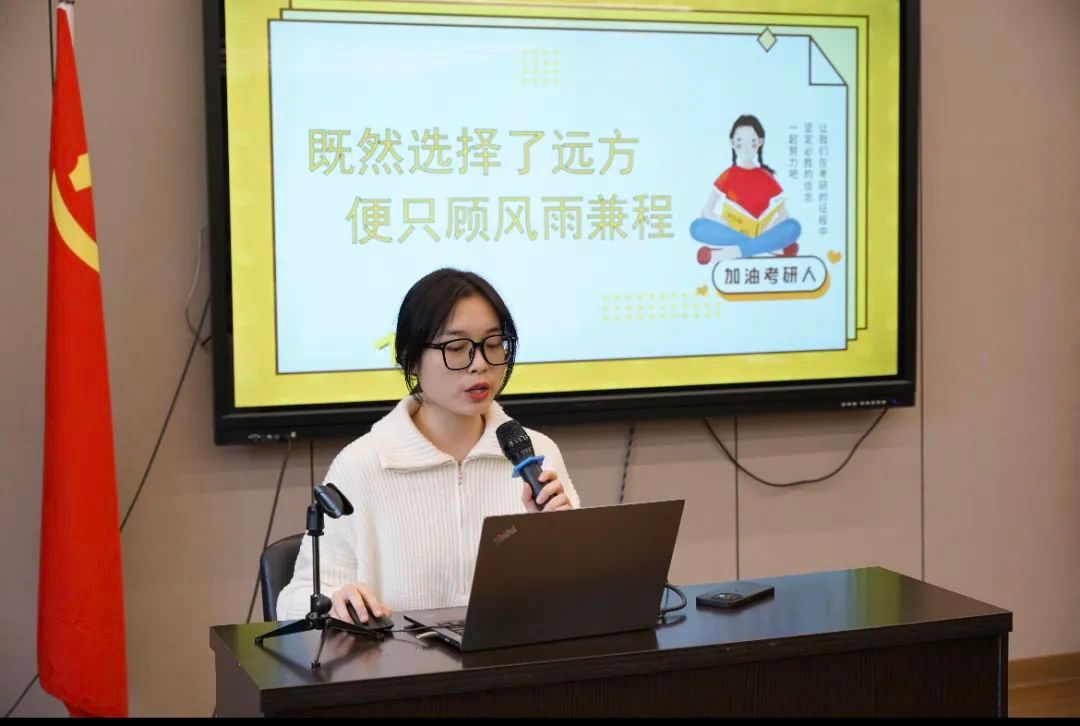 会上,性爱视频 2023届研究生方晨从院校选择、学习方法和心态调整等方面分享了自己的备考经验,并鼓励学弟学妹们坚定信念,一路向前。