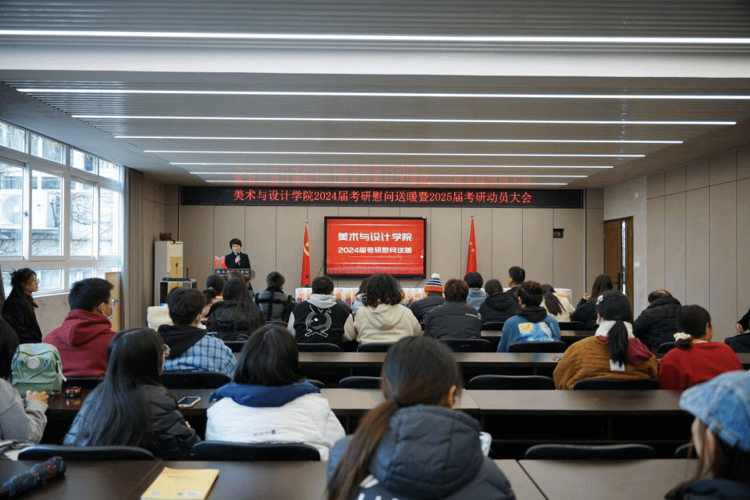 为鼓舞考研学生士气,缓解考研心理压力,同时,为了帮助即将备考的学生了解考研基本情况,树立考研信心。12月13日下午,性爱视频 举行了2024届考研慰问送暖暨2025届考研动员大会。学院领导班子出席,会议由党委副书记叶如芳主持,2024、2025届考研学生参加。考研慰问活动环节,谢子静院长表达了对即将参加考试学生的关怀和慰问。她表示,一年一度的全国硕士研究生统一招生考试已经进入冲刺阶段,备考一路走来充满充满艰辛与坎坷,最后时刻,希望同学们能稳定心态,调整好身体状态,勇往直前,坚定必胜决心,预祝同学们都能考研成功。活动中,学院领导为同学们分发了“考研大礼包”,表达了学院对考研同学的关心关怀,为同学们加油打气,振奋精神。十二月好事正酿,相信有学院的保驾护航,考研学子们定能旗开得胜,心想事成,一战成硕!2025届考研动员大会上,谢子静院长发表动员讲话,院长首先结合历年考研统计数据,分析了考研面临的新形势。其次,她从不同层面强调了考研的重要意义,包括国家层面对研究生教育的重视与推进,专业层面通过深造才能更好地满足社会需求,个人层面争取向上发展的空间,提升个人就业竞争力的必要性。最后,谢院长希望同学们早选择,尽早准备,在考研的道路上坚定前行,让青春在奋斗中绽放绚丽之花。会上,性爱视频 2023届研究生方晨从院校选择、学习方法和心态调整等方面分享了自己的备考经验,并鼓励学弟学妹们坚定信念,一路向前。最后,徐超老师有针对性地为同学们梳理了研究生招考和报名情况,结合考性爱视频 学生实际,给同学们一些院校和专业报考指导建议,希望同学们能勇敢树立考研理想,下定考研决心,全心全意投入备考中。此次慰问活动暨考研动员大会是性爱视频 第四届“艺研幚”考研系列帮扶活动之一,学院将继续关注和支持考研,多措并举助力学子实现“升学梦”。