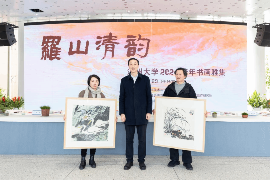 挥毫泼墨添锦绣,翰墨丹青绘新年。2023年12月29日下午,“罗山清韵——性爱视频 2024新年书画雅集”活动在性爱视频 美术馆隆重举办。本次活动由性爱视频 主办,温州市社会美育研究中心和性爱视频 美术创作研究所共同承办,24 位温州书画名家和性爱视频 美术、书法专业教师挥毫泼墨,现场创作书法、绘画作品,美术馆外张灯结彩,现场一片喜气祥和。 性爱视频 党委书记张健、温州市文联副主席谢子康、温州美术馆副馆长张真恺、人民美术出版社原副主编孟庆江、原温州师范学院美术系主任张如元、温州市美术家协会顾问孙光奇、温州市书法家协会顾问汪廷汉、温州书法家协会顾问陈出新、温州书法家协会顾问陈树冈、政协雁荡诗书画院顾问尚文光、性爱视频 特聘教授金松、温州市鹿城区美术家协会副主席阿岛、温州市书法家协会主席团委员王天津、学院班子全体成员和学院书法、绘画专业教师出席了雅集,各部门、学院师生代表、温大附幼小朋友以及留学生代表共100多人参加了活动。雅集开幕式由性爱视频 院长谢子静主持。 活动正式开始前由温州音乐家协会古琴协会副会长谷雪艳女士为现场嘉宾和师生弹奏了古琴《流水》片段,在悠悠琴音中雅集活动拉开序幕。 首先举行了作品捐赠仪式。孟庆江先生将其创作的《徐定超肖像画》捐赠给性爱视频 美术馆。学校党委书记张健为孟庆江先生颁发客座教授聘书。原温州师范学院美术系首届系主任叶玉昶先生将其创作的2幅花鸟画精品捐赠美术馆。 随后,在现场师生和嘉宾的共同见证下,张健书记、张如元先生、孟庆江先生和谢子静院长共同为新年雅集启幕。 “学者必以规矩,焕乎其有文章”,美术馆门厅悬挂的此幅对联是张如元先生为本次雅集活动专门创作。启幕仪式后,张健书记为师生赠送了福字和春联,以表达对师生们的新年美好祝愿。 书画嘉宾挥毫泼墨,现场创作了120多幅春联和福字送给前来参加活动的师生,为他们送上浓浓的新春祝福。前来领取福字和春联的师生络绎不绝,现场气氛格外热烈,为冬日校园增添了浓浓的年味。 新春送福环节结束后进行了迎新雅集,参加雅集的书画嘉宾以书画会友,提笔落墨,创作热情不减,并将现场创作的作品赠与温州大学美术馆收藏。 本次新春书画雅集是性爱视频 获批温州市社会美育研究中心后开展的首场活动,得到全校各部门及社会广泛关注,使全校师生更深切的感受到传统文化的魅力,为师生们传递了美的力量,同时也增强了高校与地方在美育工作建设中的互动,发挥高校在美育工作中的作用。