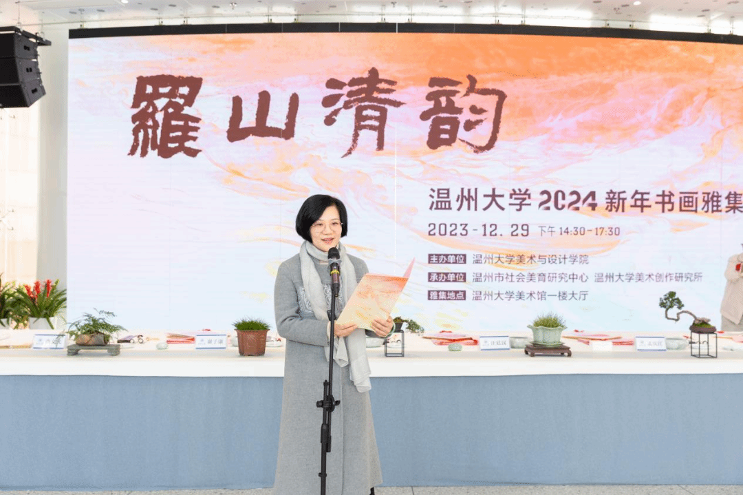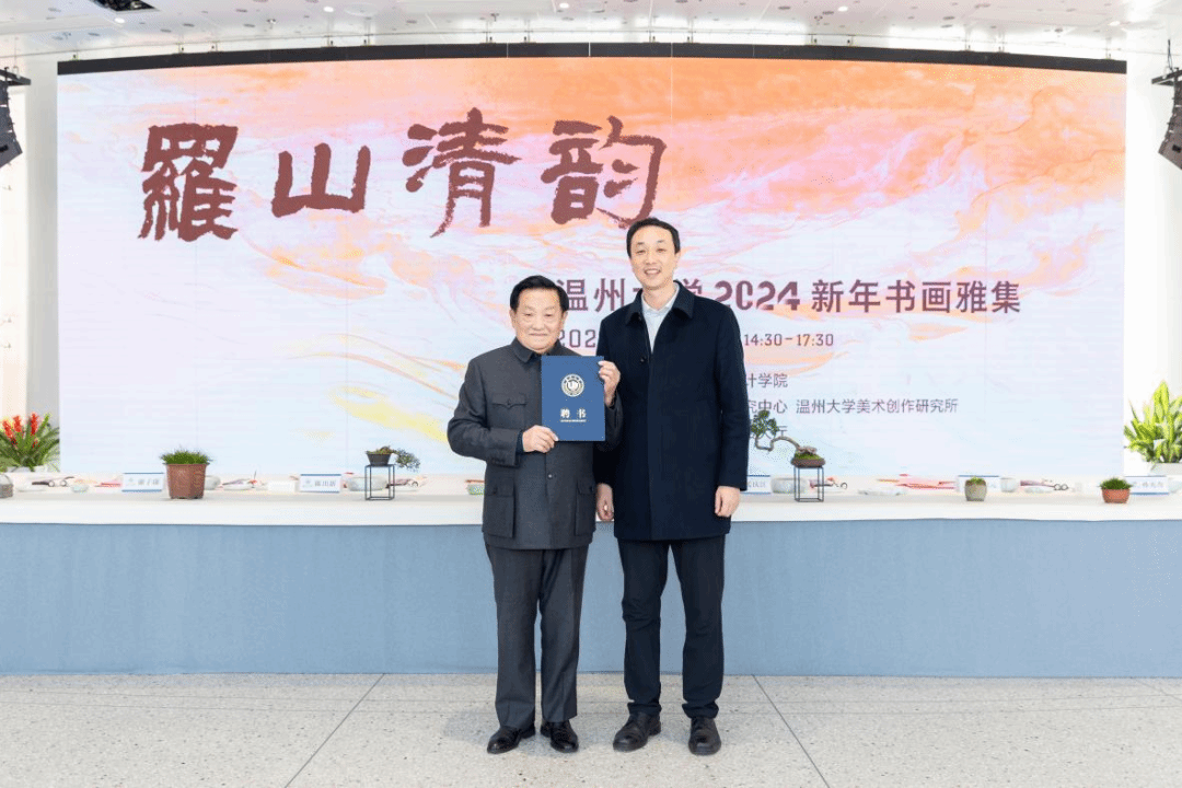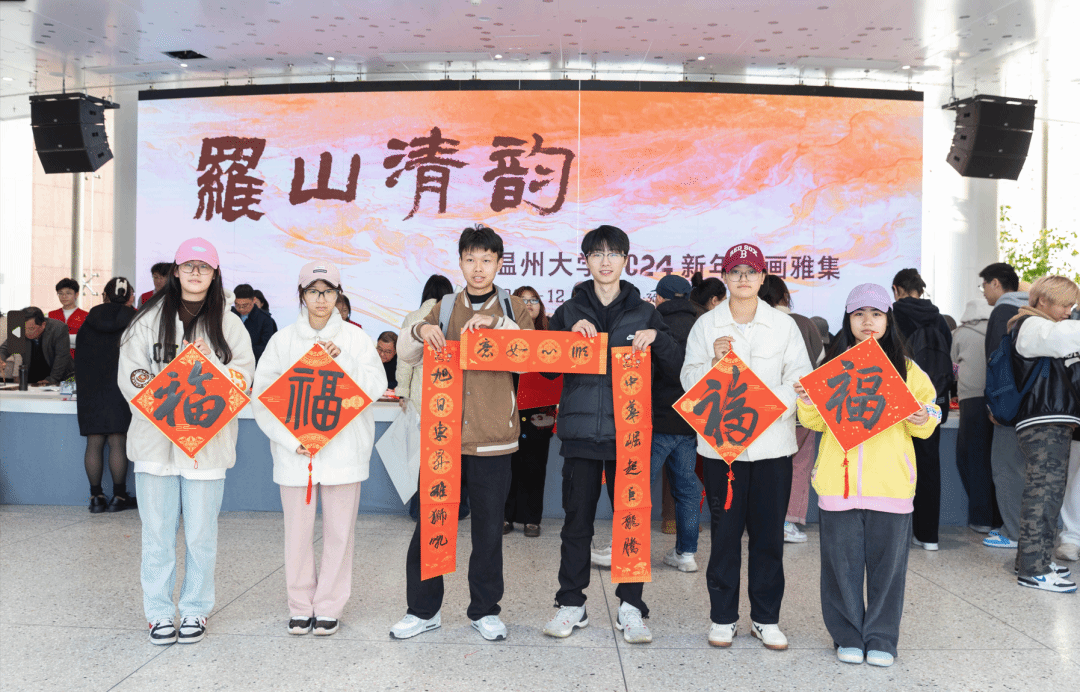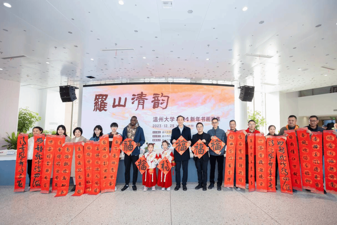 挥毫泼墨添锦绣,翰墨丹青绘新年。2023年12月29日下午,“罗山清韵——性爱视频 2024新年书画雅集”活动在性爱视频 美术馆隆重举办。本次活动由性爱视频 主办,温州市社会美育研究中心和性爱视频 美术创作研究所共同承办,24 位温州书画名家和性爱视频 美术、书法专业教师挥毫泼墨,现场创作书法、绘画作品,美术馆外张灯结彩,现场一片喜气祥和。