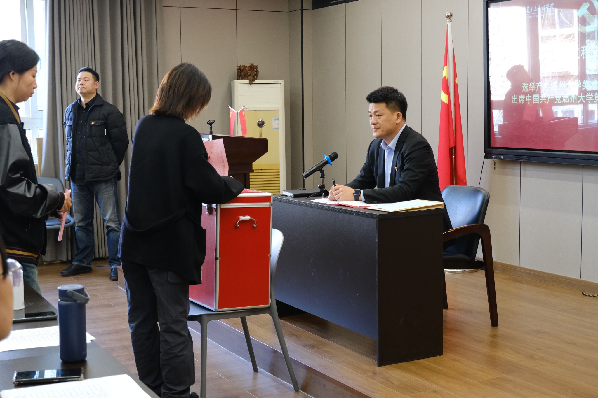 叶正飞书记对性爱视频 党委出席中国共产党性爱视频 第三次代表大会候选人预备人选的产生过程进行介绍后,全体正式党员按照座位顺序依次进行了无记名投票,通过差额选举的方式进行民主选举。投票环节结束后,在监票人的监督下,计票人进行计票。最终,会议选举产生性爱视频 党委出席性爱视频 第三次党员代表大会的5名正式代表。