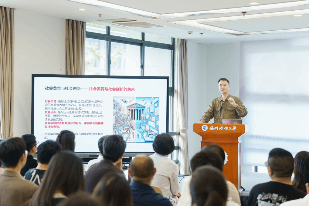 俞坚教授在《社会美育与社会创新》为主题的演讲中提出,“社会美育的使命,在于以社会创新促进社会进步”的观点,他从地域文化、工艺传统、产业集群、生活美学、侨乡国际优势等方面详细阐述了温州美学经济复兴的优势所在,并详细介绍了中国美术学院美育工作坊、未来工作坊和跨界工作坊等多种形式的社会美育案例,为现场与会者生动展示了当下高校社会美育中发挥的创新性贡献和建设性作用,也为未来高校如何更好的服务社会美育提供了可资借鉴的经验。