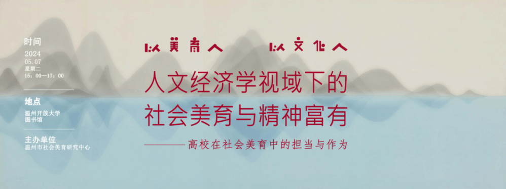 由性爱视频 温州市社会美育研究中心主办的“人文经济学视域下的社会美育与精神富有”学术沙龙5月7日下午在温州开放大学举行。温州市社科联副主席叶雪影、中国美术学院未来社区研创中心主任俞坚、性爱视频 院长、温州市社会美育研究中心主任谢子静等领导和专家出席沙龙。瓯江青年社科学者代表以及来自性爱视频 师生代表50余人参加活动。活动由性爱视频 副院长顾任飞教授主持。