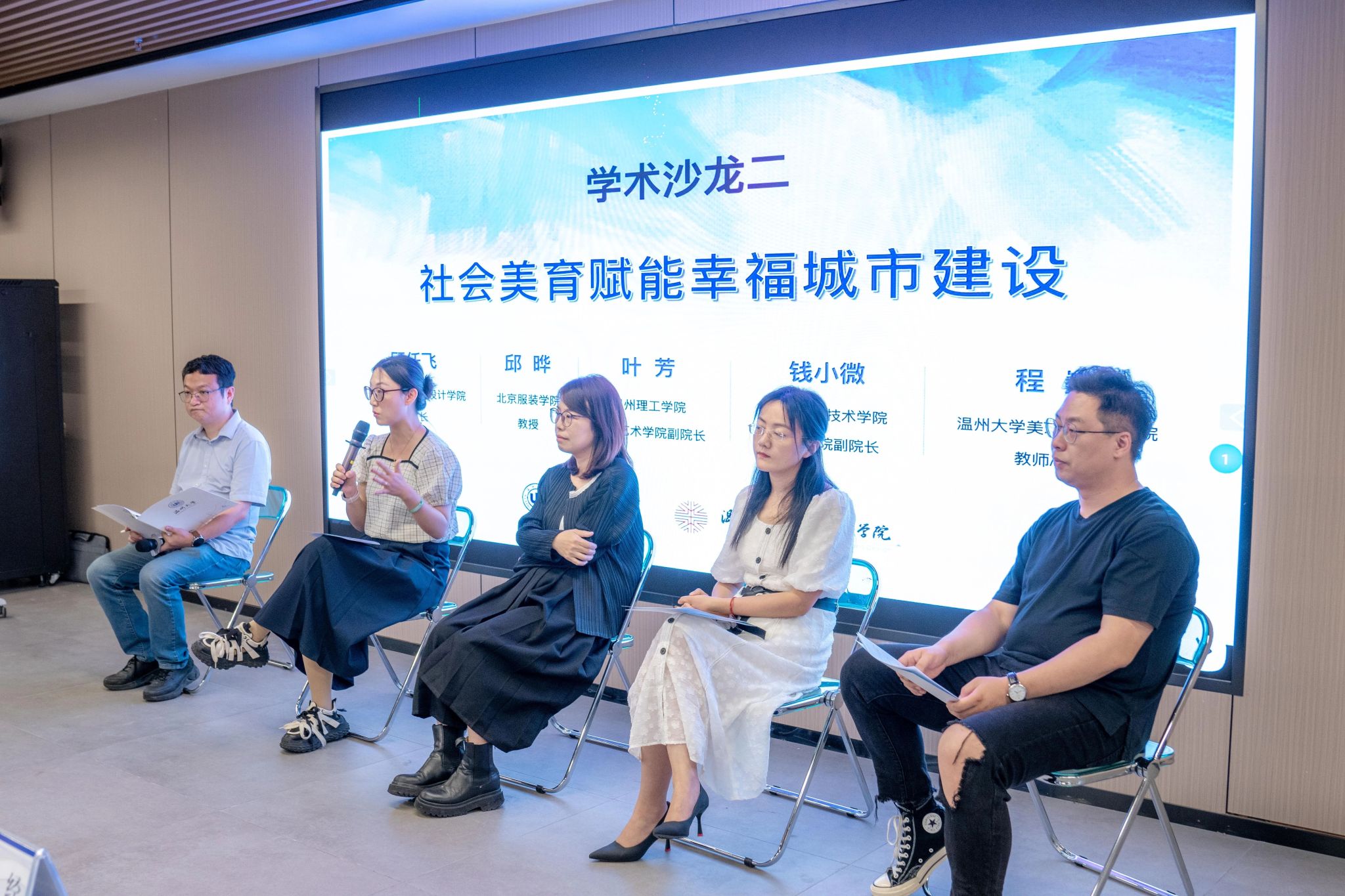 该场由性爱视频 副院长、教授顾任飞主持,北京服装学院教授邱晔,温州理工学院设计艺术学院副院长叶芳,温州职业技术学院设计学院副院长钱小微,性爱视频 教师、博士程巍围绕“社会美育赋能幸福城市建设”展开分享和讨论。