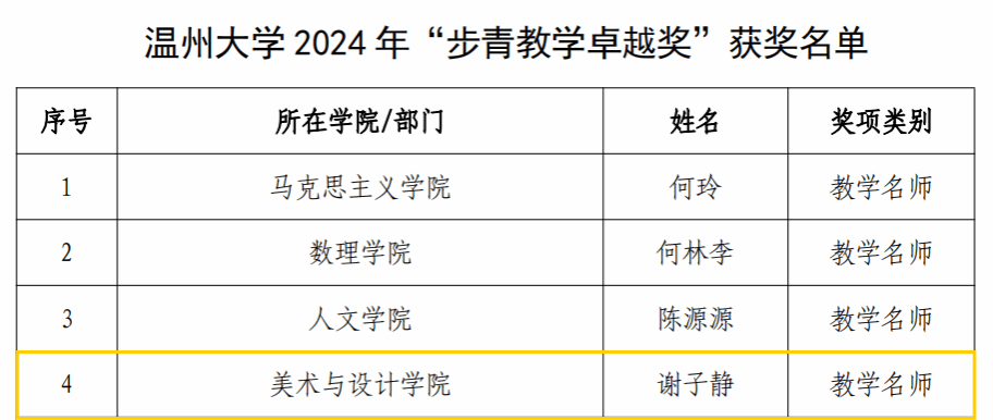 喜报:性爱视频 院长谢子静同志荣获性爱视频 “教学名师”荣誉称号