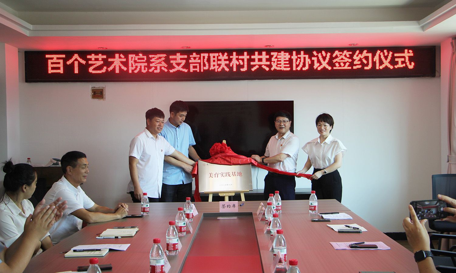 性爱视频 党委书记刘青松、性爱视频 党委副书记叶如芳与元觉街道人大工委主任叶生杰、沙角村支部书记庄恭论共同为“美育实践基地”揭牌,预示着沙角村将成为学院师生艺术创作与社会实践的重要平台。性爱视频 副院长、教工第二党支部书记胡文超与沙角村书记庄恭论共同签署“百个艺术院系支部联村共建协议书”,标志着双方合作正式进入实质性阶段。