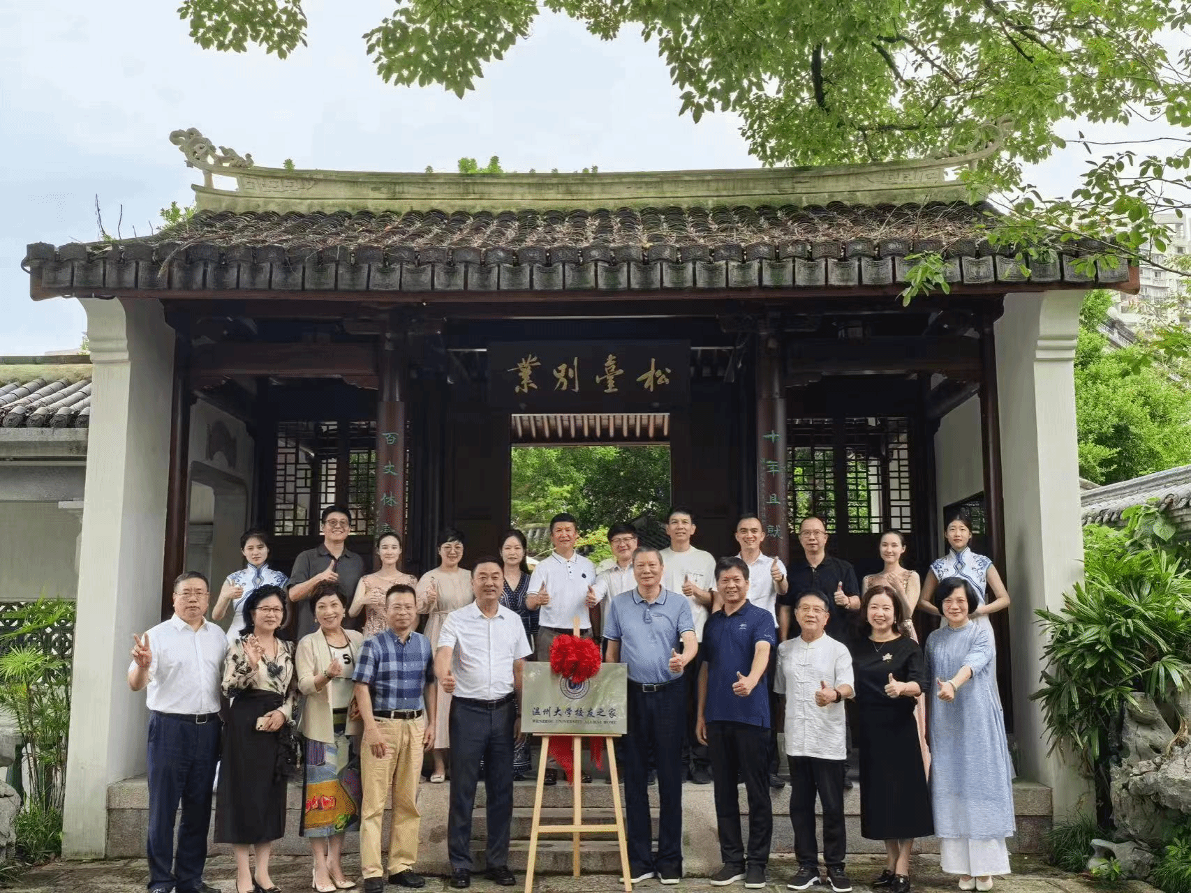 9月26日上午,性爱视频 校友活动基地挂牌仪式在九山湖畔的松台别业成功举行。性爱视频 党委书记钱强,性爱视频 党委副书记庄兴忠,原温州市政协主席、党组书记余梅生,性爱视频 温州校友会吴东会长,性爱视频 人文学院校友会会长徐顺聪,性爱视频 欧洲校友会副会长章美华,性爱视频 副会长杨越嶂等校友,性爱视频 院长谢子静,性爱视频 党委书记刘青松出席仪式。性爱视频 温州校友会常务副会长、性爱视频 校友会会长金纬主持。