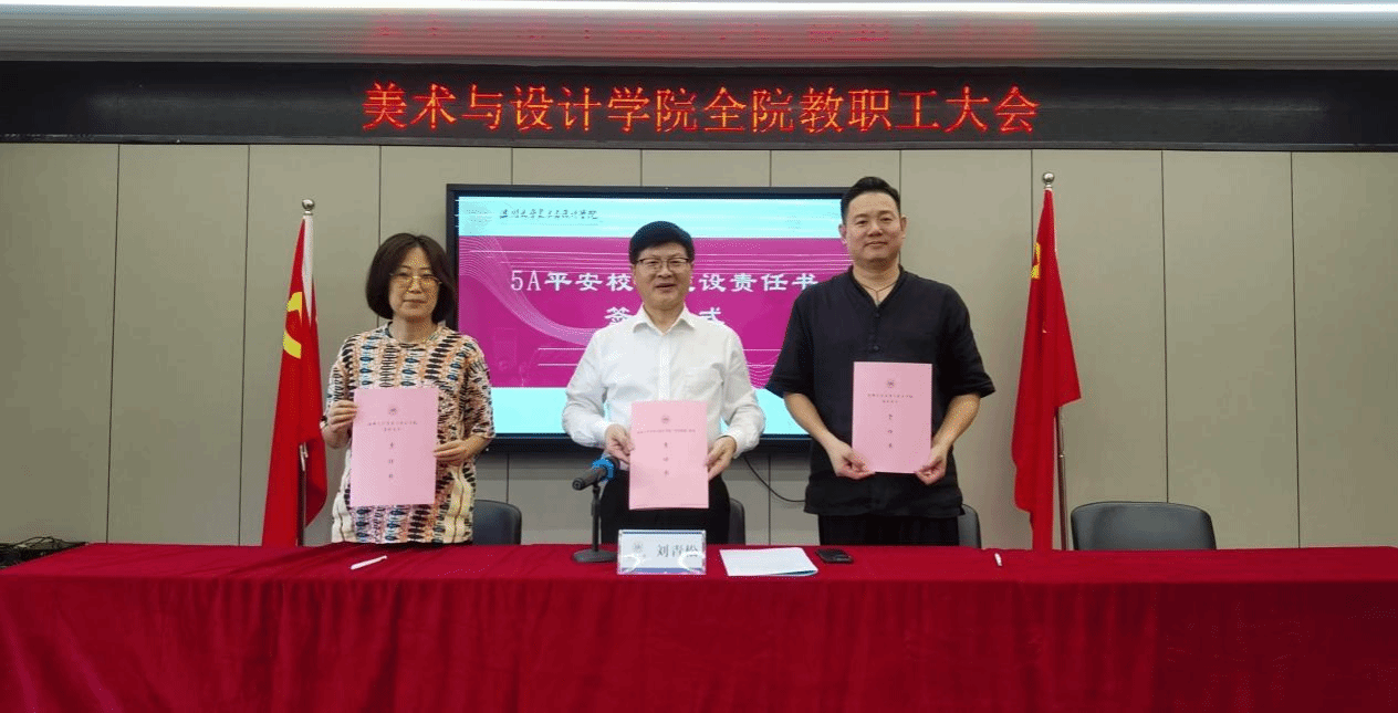 会上宣布了学院平安校园建设领导小组名单,并举行了签约仪式,两名老师代表上台进行学院“平安校园”建设责任书、学院消防安全责任书签约。最后,刘青松书记强调要对标5A等级平安校园建设标准,逐项对照建设标准细化任务,根据时间节点和工作进度,落实各项创建工作。