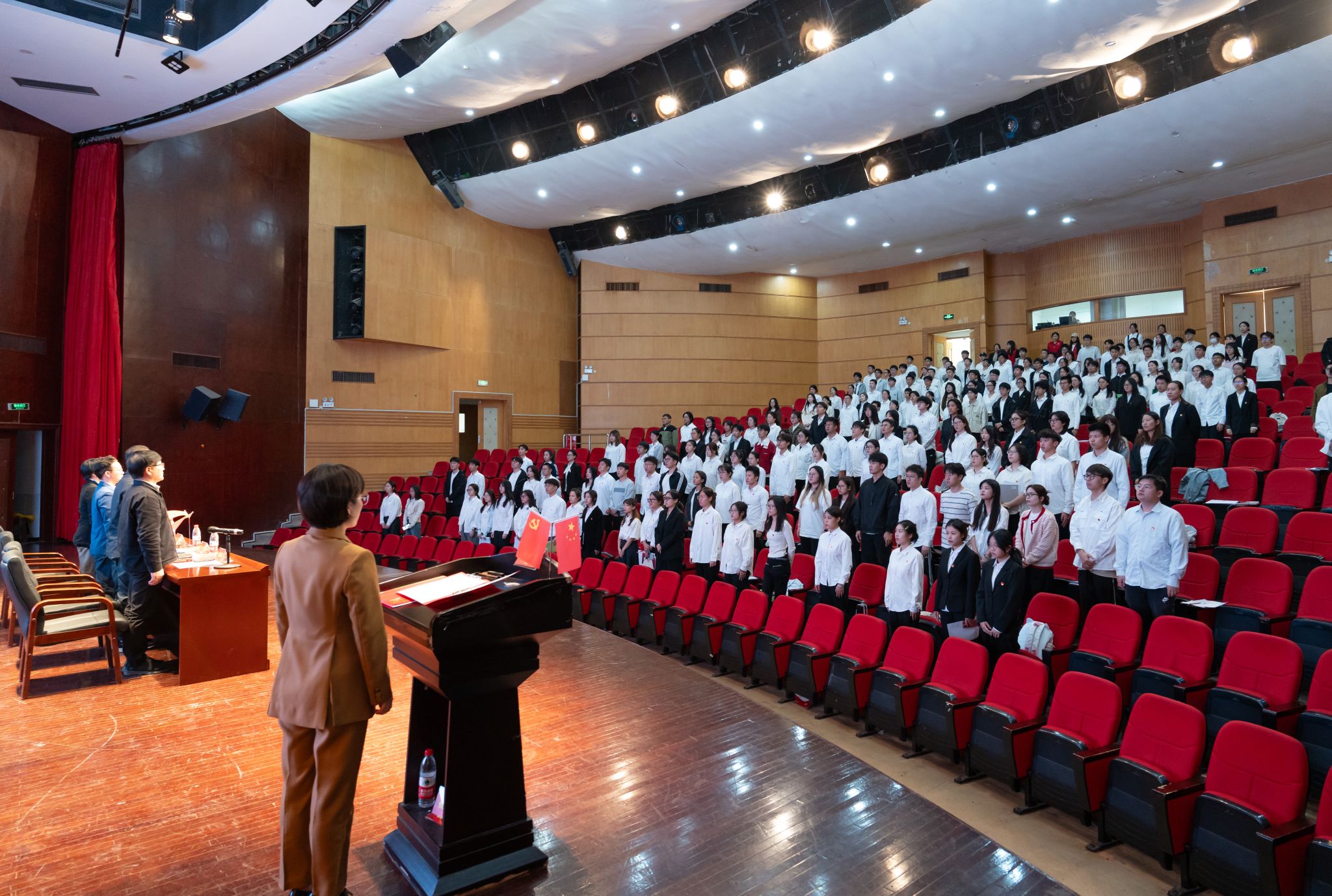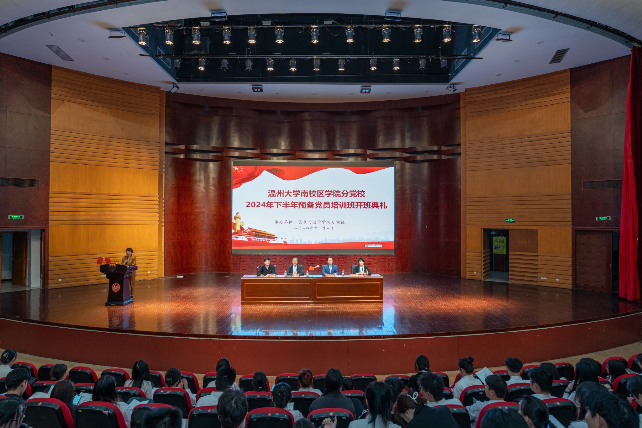 根据《关于2024-2025学年第一学期中共性爱视频 委员会党校有关工作的通知》安排,11月6日下午,2024-2025学年第一学期中共性爱视频 委员会党校学院分党校(南校联合)预备党员培训班开班典礼在南校区音乐厅顺利举行。数理学院党委书记、分党校校长陈兴桂,计算机学院党委书记、分党校校长全力,性爱视频 党委书记、分党校校长 刘青松,化材学院党委副书记、分党校副校长王晓华出席,仪式由性爱视频 党委副书记、纪委书记叶如芳主持。 国歌响起,全体起立。开班仪式在庄严肃穆的国歌声中拉开序幕。性爱视频 党委书记、分党校校长刘青松同志为本次开班仪式致辞。刘书记为本次培训提出三点要求:首先,提高政治站位,明确入党动机,不断加强思想觉悟和党性修养;其次,注重学习、思考、实践与领悟的结合,聚焦于解决具体问题,力求学习有成效,言论有见地,行动有效果。最后,刘书记勉励各位预备党员同志,时刻保持正确而严谨的学习态度,严格执行培训纪律,以高度的热情完成本次培训。 性爱视频 本科生第二党支部李琳同志作为学生代表进行发言,并代表全体学员作出庄严承诺:遵守纪律、积极学习,将思想追求与实际行动有机结合起来,在行动中领悟和贯彻党的思想,积极向党组织靠近。 性爱视频 学工办辅导员、班主任陈嘉怡为学员们宣读《中共性爱视频 委员会党校分党校(联合)学员管理办法》,特别强调培训考核内容和纪律问题,确保培训取得实效。 向学员代表赠送学习材料。 开班仪式结束后,马克思主义学院党委书记杨立淮同志开展了第一堂专题讲座——学习新版《中国共产党纪律处分条例》。杨立淮老师通过生动的历史故事与鲜活的案例,深入浅出地对《条例》进行了解读,同时强调提高纪律建设的政治性、时代性和针对性的重要性,提出要把党章和党规党纪学习教育作为发展党员培训的重要内容。引导学生党员在深学、细悟、笃行中不断巩固自身党性修养,自觉将纪律要求内化于心、外化于行,一体推进锤炼党性、纯洁党风、严明党纪的综合效能。据悉,本次预备党员培训班汇集南校9个学院共计213名学员,共安排9次课程学习,旨在通过构建全方位、多层次的党员教育体系,将理论知识与具体实践相结合。加强引导预备党员树立正确理想信念,秉持高标准与严格要求,不断拓宽个人学习平台,进一步拓展党建前沿阵地、创新形式、增强水准,积极打造一支政治过硬、业务精湛、作风优良的党员队伍,为促进党的建设高质量发展提供坚实保障。