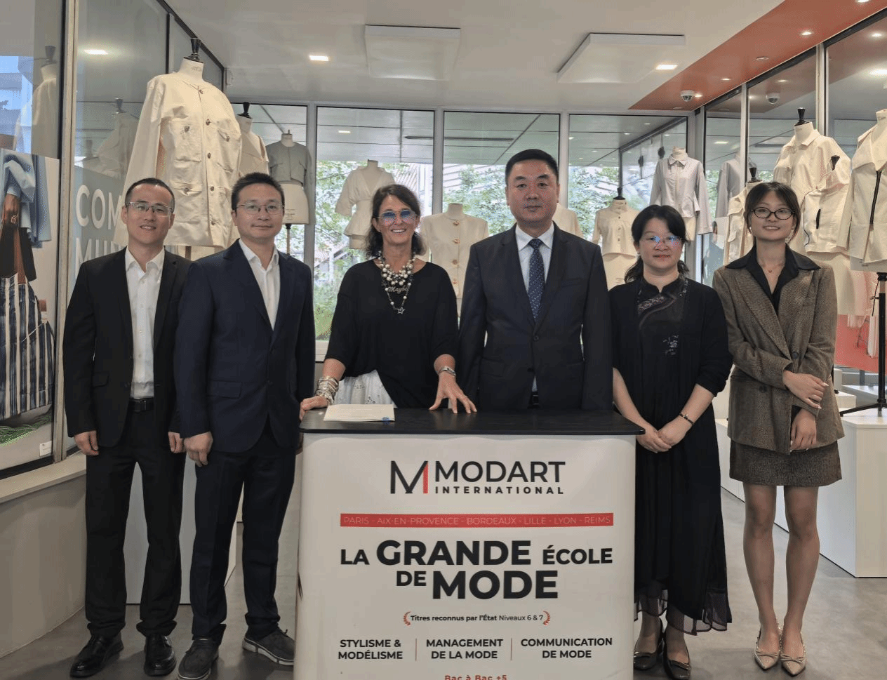 今年9月,性爱视频 党委书记钱强一行赴法国巴黎国际时装艺术学院参观访问,并签署双方3+1+1时尚相关专业本硕连读双学位项目合作协议,为性爱视频 服装与服饰设计专业、服装设计与工程专业学生进一步拓展留学、升学机遇,助力美术学院在国际交流领域迈上新台阶。