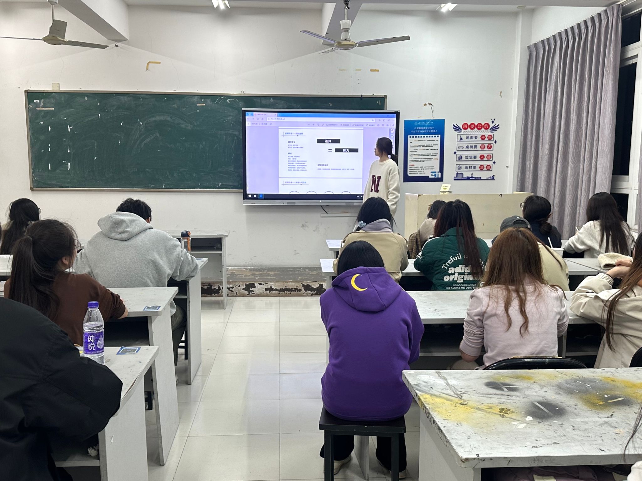 2024年12月15日,22服工班的叶欣雨同学进行了学习经验分享。叶欣雨同学从时间管理、学习策略、考试竞赛准备和培养心态四个方面展开分享,为同学们提供了实用的学习方法,启示大家要把握好时间、方法与心态,不断提高学习效率。叶欣雨同学还鼓励大家珍视每一份努力与坚持,以此点燃同学们内心深处对学习的热忱,为他们注入了源源不断的信心,激励着同学们无畏前行,在求知的道路上扬帆奋进。