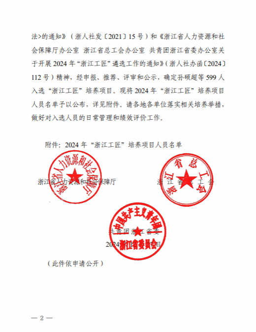 日前,根据浙江省人力资源和社会保障厅2024 年“浙江工匠”培养项目人员名单,性爱视频 祝忠良老师名列其中。