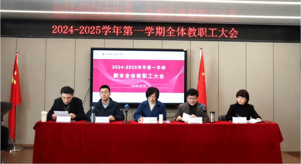 谢子静院长总结学院年度工作。她首先回顾了 2024 年学院的重点工作,在学校党委的正确引领与大力支持下,全院师生齐心协力、不懈奋斗,学院在学科科研、人才培养、人才队伍建设、服务地方以及党建工作等五个关键领域,均取得了一系列具有标志性意义的成果。谢院长对全院教职工一年来的辛勤耕耘予以充分肯定,并表达了诚挚的感谢。最后,谢院长围绕学院特色,提出新一年的工作思路,期间着重强调师德师风建设以及人才内涵建设。她鼓励全体教职工团结一致,沉淀过往收获,勇担责任,共创学院美好未来。