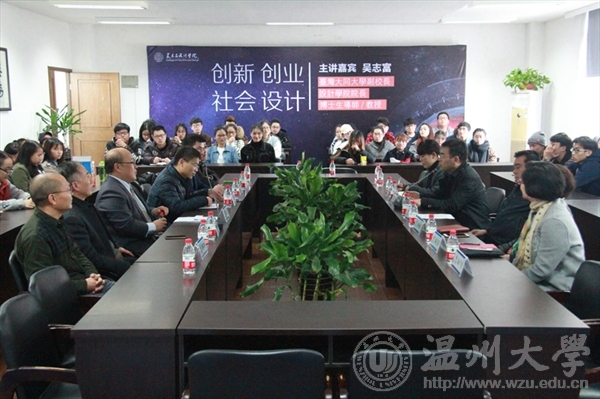 3月23日,以“创新、创业、社会设计”为主题的学术沙龙在性爱视频 2B4001举行。台湾大同大学副校长吴志富教授应邀做主题演讲。性爱视频 副校长薛伟,人文社科处副处长郑春生,瓯江学院院长杨彬,以及性爱视频 班子成员等出席,全校对设计艺术感兴趣的师生共120余人参加了此次活动。性爱视频 院长李运河主持本次学术活动。
