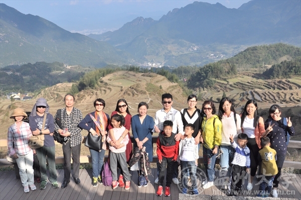 2016年11月19日,期待已久的工会活动终于启程。翻看了许多传说中“中国最美梯田”的艺术采风照,被云和梯田春夏秋冬不同风格的线条景色深深陶醉,更加坚定了去现场一睹风采的向往。带着无限美好和喜悦,美术工会大家庭拖家带小高高兴兴出发了。云和,自古被喻为“洞宫福地”,山水资源独具特色。云和梯田是国家湿地公园试点,获评“中国特色旅游最佳湿地”、“中国美丽田园”,并被美国CNN评为中国最美的40个景点之一,是中国摄影之乡——丽水的十大摄影基地。到达云和梯田,映入眼帘的是千年稻米文化衍生的水梯田。群山逶迤,阳光葱郁,镶嵌在群山之间的层层梯田,高地起落、依次递接,依山就势形状各异,顺着山坡一块块不规则地蜿蜒开去。他们说,春天的梯田是一幅淡淡的水墨画。浓浓的绿、重重的绿,绿得绵密绿得厚重,犹如一针针一线线的刺绣,把整座山谷织成绿色的绒毯。而此刻,深秋的梯田,是一幅色彩浓郁的油画。收割后的梯田,重新归于简洁和朴素。颜色虽然暗淡,生命之力却深刻隽永。水是梯田的生命之源,梯田无语,流水潺潺。回望云和梯田,田埂棱角分明,梯级层次清晰,如同一部刻录着中国千年农耕文明成果及非物质文化遗产的立体史册。老师们显然已经陶醉于这云水的世界、曲线的世界。采风时间虽短,但欢声笑语不断,心情如同山间空气般得到天然净化。工作的烦恼与大自然的鬼斧神工相比,前者好比路边浮尘,不值一提。美术工会希望一如既往为每个老师定期开辟美丽通道,借大自然之美,实现学院和谐建设之大美。