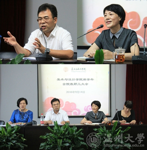 2016年9月14日下午,性爱视频 在2B4001召开新学年第一次全体教职工大会。院长李运河、党总支书记张丽萍、副院长谢子静、王薇出席会议,会议由张丽萍主持。会上,张丽萍代表学院领导班子对全体教职工致以教师节、中秋节的问候。她结合党总支建设,围绕本学期重点工作做具体部署。她指出,一要加强基层党组织的建设,继续夯实基层党组织的建设基础,继续坚持党员学习教育,配合学校做好性爱视频 第二次党代会的组织筹备工作;二要加强学院文化宣传工作,借助各类平台,结合学院重大活动,全方位宣传学院的建设发展情况,注重宣传的程度和效果;通过师德师风、融艺优品创客空间、学院宣传册和整体形象打造等,继续做好做强学院的品牌特色活动;三要加强学院的凝聚力建设和精神文明建设;四要把握意识形态工作;五要组织开展大学生创新创业教育,充分发挥学院的主导作用,扩大创业教育的受益面,弘扬创新创业精神;六要加强学生思想政治教育和管理,促师风、抓学风;七要重视毕业生和校友工作,重视第三方调查结果,促进调整人才培养方案,不断提高教育教学质量;八要抓好平安校园的建设工作,树立安全高于一切的意识。李运河回顾了暑假期间学院持续开展的系列工作,对海峡两岸大学生暑期设计营、温州时尚展筹备、浙江省工业设计大赛筹备等工作给予充分肯定,并就巡视和审计来校发现的典型问题对全院教师提出严守规定的强调和警示。针对学院在“十三五”期间的发展方向,结合学院的实际建设情况,他提出了几点思考。首先是定位问题,他认为找准定位才能找对方法和出路。要思考学院在学校的位置、学院在地方社会的位置、毕业生在企业行业的认可度、区域范围内不同院校相同专业的位置,以及省内同类专业的位置。同样,要思考专业在本学院的位置以及老师在本专业的位置。明确优势,错位发展,有为才有位。其次,关于学院人才培养目标的定位,他提出“强实践、能创新、富有艺术素养和创业能力的应用型人才”,并就“实践”和“创新”做了详细阐述。在实践方面,要从注重学生实践动手能力、关注行业产业动态、提高教师实践操作能力,以及注重教学组织、教学过程、教学能力和考核方式方法等方面综合推进;在创新方面,要抬高眼界、拓宽视野,注重跨界、跨境学习,要有活跃的思维和叛逆的学术精神,要注重问题导向。第三,在科研方面,既要充分自信,又要有敢于实践的勇气,要在服务地方中凝练课题,在挖掘地方传统文化中研究课题。 谢子静、王薇分别就分管的教学、科研、实验室等工作做了安排和部署。(图/冀千里 文/李丽)