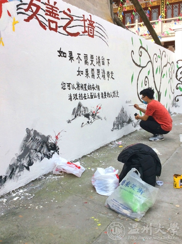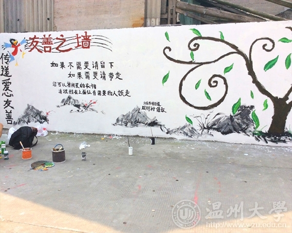为了响应与落实市委“新青年下乡”主题精神,2016年3月26日早上八点,在性爱视频 青协的带领下,来自性爱视频 的志愿者们前往到乐清城东街道后所村老人亭,进行了为期一天的墙绘活动。本次“新青年下乡”墙绘活动,以“弘扬雷锋精神,传递爱心友善”为主题,呼吁人们将自己的旧衣物捐给有需要的人们。这不仅是一次物质上的贡献,更多的是精神上的支持与帮助。志愿者们通过画笔和色彩,将自己想要传达的信念幻化成一颗颗正在茁壮成长的绿树,希望“雷锋精神”这一理念像这茁壮成长的绿树一样,青春常在,精神永驻。我们本次的墙绘活动一方面主要是运用专业知识与技能去服务社会,向社会宣传大学生们所理解的“雷锋精神”,呼吁社会弘扬“雷锋精神”,真正做到专业与实践相结合,使我们融入到社会中去,为社会奉献出自己的一份力量;另一方面,不仅让我们有机会了解农村、服务农村,还让我们在基层学到了许多平时难以不到的知识技能。 文:林依如图:林依如