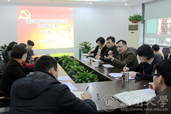 为了切实做好学院意识形态工作,进一步增强基层党员干部理论素养,3月30日,性爱视频 党总支召开全体党员理论学习会(中心组理论学习扩大会会议) ,特邀性爱视频 党委委员、宣传部部长潘玉驹做高校意识形态专题讲座。学院总支书记张丽萍主持学习会。