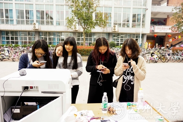 上午9点,工作人员便开始接待同学们进行赛事报名以及打印自顶自明信片工作。值得一提的是,由中国邮政温州分公司提供的明信片自助打印机使得每一位现场的同学都可免费通过扫描微信二维码上传照片打印两张属于自己的明信片。本次明信片设计大赛的参赛方式多样,如摄影、手绘和剪纸等等,因此受到了许多同学的关注,争相报名参赛。本次大赛更是吸引来了温州商报记者,对于记者的问题,性爱视频 学生科副科长叶筱卉老师也一一作了解答。