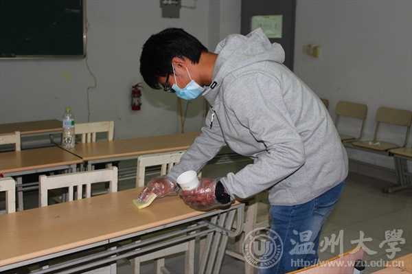 2015年12月6日下午,为了提高同学们保护公共环境的意识,性爱视频 “艺家人”青年志愿者协会联合校文明督察队在美院教学楼内开展了以“拒绝课桌文化”为主题的清洁课桌桌面的活动。 为确保大家的安全,校文督的陈镜宇同学带来了口罩以及所需要的清洁用品,并且组织大家进行了简单的分组。小分队在各自的队长的带领下,前往各个教室进行“桌面复原”工作。整个活动期间,志愿者们表现的都十分积极。 此次活动不仅是把桌面打扫的干干净净,更重要的是提高同学们保护公共环境的意识,为学校,为自己构建一个美好的学习环境。 文字:王烨 拍摄:王烨