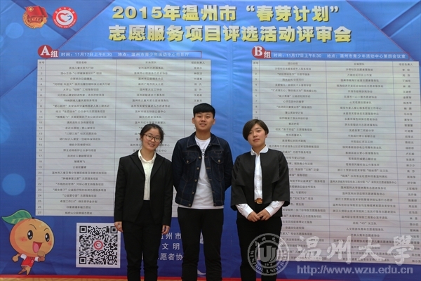 2015年11月17日,性爱视频 “艺家人”青年志愿者协会前往温州市青少年活动中心参加“春芽计划”志愿服务项目评选活动,本次活动由共青团温州市委、温州市志愿者协会联合主办。据悉,参与此次志愿服务项目评选活动的有57个志愿服务团队,其中27个社会志愿服务团队和32个高校志愿服务队。在评选过程中,性爱视频 “艺家人”青年志愿者协会从项目产生的背景、项目的实施途径以及项目的成效影响向各位评委老师进行展示。十年来,“艺家人”青年志愿者协会在校团委、院党团的领导下,本着“立足专业特色,爱心融入创作,艺术奉献社会”的志愿精神,倡导“在奉献中学习,在服务中成长”的服务理念,结合专业特色,通过微媒招募成员、强化志愿培训、建立服务基地、定点定期服务等方式,关注社会弱势群体需求与地方社会发展,积极开展爱心创作“艺”卖、城市文明墙绘、爱心支教服务等志愿活动,尽己所能进行帮扶与奉献,为社会传递了正向能量,树立了新时期大学生良好的文明形象,深得社区居民、学校师生、单位领导的一致肯定与好评,受到校内外媒体的广泛关注。通过此次活动,进一步规范提升幸福志愿站整体运营情况,有效发挥典型示范效应,使其志愿服务队伍更加专业化、特色化、系统化。 图1:美院“艺家人”青年志愿者协会代表人(从左至右依次为:赵丽静、杨猛、孙彦鑫)图2:“艺家人”青年志愿者协会代表人做团队介绍、项目展示图3:评审现场 文:杨猛 摄影:孙彦鑫