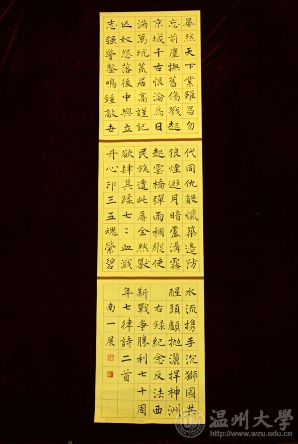 为纪念中国人民抗日战争暨世界反法西斯战争胜利70周年,传承爱国主义精神,弘扬社会主义核心价值观,激发民族自尊心、自信心和自豪感。自9月份发出通知以来,“纪念中国人民抗日战争暨世界反法西斯战争胜利70周年”书画大赛共收到特邀教职工书画作品共计29件,学生书画作品共计196件,经相关书画专家对学生绘画类和书法(篆刻)类作品严格评审,现将评比结果公布如下:?xml:namespace>绘画类评选结果 等级学院作品名作者一等性爱视频 《奇袭》林盖月城市学院《“70”伟大的胜利》李文静二等性爱视频 《忆团结》范桂梅性爱视频 《峥嵘岁月》吴晓强教师教育学院《前行》薛思思城市学院《让武器成为过去》谢丽娟城市学院《爱和平铭记历史》许朵瓯江学院《黑夜不再来》赵圣益三等性爱视频 《抗日中的小八路》陈婉茹性爱视频 《抗日中的中国士兵》胡淳雅性爱视频 《战后》郑也教师教育学院《珍爱和平》李林真城市学院《抗战胜利70周年》王斯曼城市学院《缅怀》张烨瓯江学院无题吴诗瑶瓯江学院无题曾东瓯江学院无题虞紫伊 书法类评选结果等级学院类别作者一等性爱视频 篆刻俞铭铖教师教育学院软笔南一展城市学院管理分院软笔史涛霞二等瓯江学院硬笔曾越洋城市学院管理分院软笔鲁洁如教师教育学院硬笔毛江月教师教育学院硬笔叶聪聪城市学院软笔王欢焕城市学院软笔葛科航三等性爱视频 硬笔王婷婷性爱视频 软笔杨凡性爱视频 软笔朱雄辉性爱视频 软笔岳通通性爱视频 硬笔景成舒教师教育学院硬笔陈雪雅教师教育学院硬笔吴林教师教育学院硬笔林安娜人文学院硬笔周丽娜 书画展于南校区性爱视频 服装楼一楼视野空间展览,展期为12月7日—12日,欢迎参观!特邀教职工参与展览作品: 学生获奖作品:一、绘画类一等:《奇袭》——林盖月一等:《“70”伟大的胜利》——李文静 二等三等二、书法类一等:《抗战祖列》——俞铭铖一等:纪念反法西斯战争胜利七十周年律诗二首—— 南一展一等:史涛霞二等 三等三等三等
