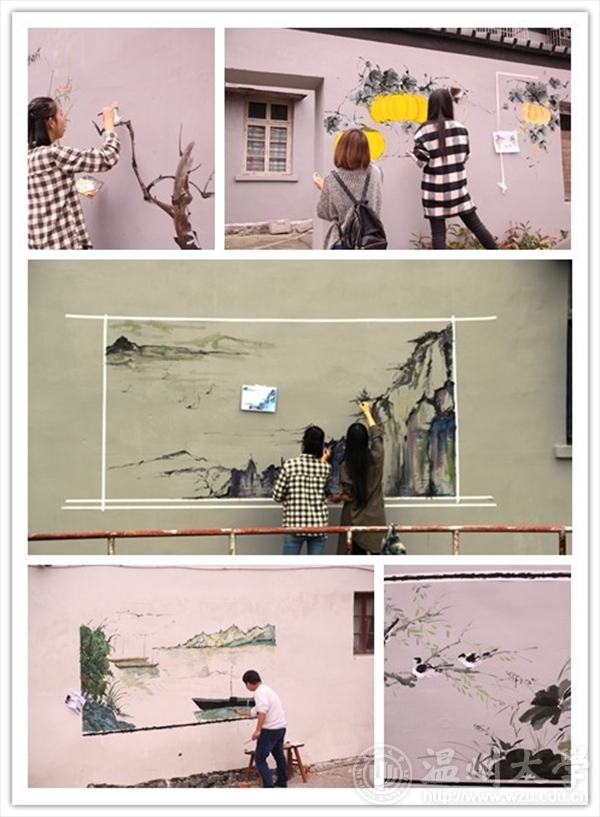 2015年11月15日,性爱视频 “艺家人”青年志愿者协会协同志愿者来到新桥街道新桥村垟中开展山水创作主题墙绘活动。 虽然天时不佳,带有丝丝细雨,却挡不住志愿者墙绘的热情。大家到达场地后,进行分组,分配颜料用具,就开始了墙绘活动。针对山水创作的主题,志愿者积极讨论,墙面如何构图,颜色如何使用。最终用了一整天的时间,完成了一幅幅墙绘,同时,志愿者积极地热情,专业的绘画功底得到了村民的一致好评,展现给新桥街道村民的都是性爱视频 志愿者吃苦耐劳、埋头干活、积极向上的优秀形象。 “艺家人”青协开展的此次墙绘活动,提供给温大在校大学生一个参与实践的平台,学以致用,展现出大学生的积极面貌,体现出美院学生的专业素质,向社会传递着性爱视频 的正能量。 文:王烨摄影:王烨