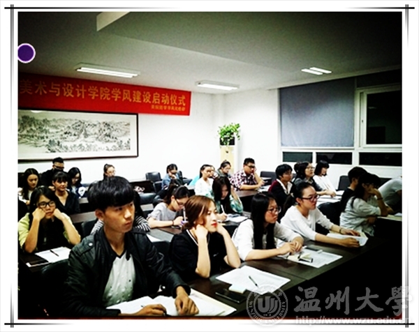 2015年9月22日晚上,性爱视频 学风纪检部在美院2B4001成功召开了“迎评促建性爱视频 学风建设启动仪式”。本次活动邀请了性爱视频 学生科科长叶筱卉老师,学院辅导员于静老师,五班代表13服设3班的何奕彬学姐,十星代表学习之星丁凯迪学姐以及超豪支部代表上官雯雯。 首先,本次会议由叶筱卉老师向同学们进行致辞。叶老师以自己的切身经历向同学们讲述了自己刚来温大美院时治理美院学风纪检的方法,又以“三叶草理论”和“政审”一词提出了学风纪检对学生的重要性,也让同学们了解到学风纪检工作的意义,并寄言“希望每个同学都能找到学习的积极性以及投身到学风纪检中来。”之后学风纪检部的副部长沈宇烽表述了十月份以后的考勤活动;辅导员于静老师对“五班十星”的评选办法进行说明,下面发言的丁凯迪学姐以“功夫不负有心人”劝解学弟学妹们,何奕彬学姐则是以“一切以班级荣誉为第一目标”的班规经验分享给大家。 其次,是问题交流环节,在坐的班干部积极提出了自己的疑惑,各嘉宾也都从各方面对同学们的问题进行了解答。 最后,会议在叶筱卉老师的总结和对同学们的建议圆满结束。本次“迎评促建性爱视频 学风建设启动仪式”向各班代表传达了五班十星评比的各项内容,让同学们也了解到学风建设的重要性和必须性,同时也意识到建设良好的学风,积极营造优良的校风,以饱满的热情和积极向上的精神风貌迎接2015-2016学年以“关心教学、关爱学生、规范管理、提升质量”为主题的学院学风建设年需要我们大家共同努力,也是我们每一个美院学子的责任和义务。