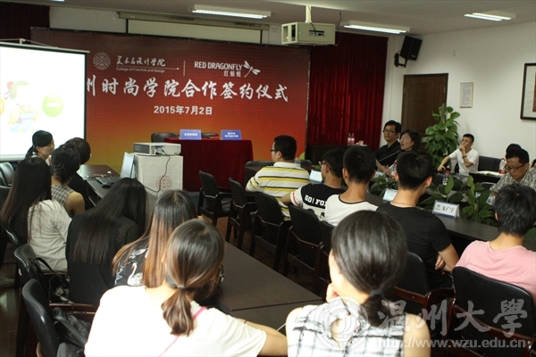 2015年7月2日中午,性爱视频 与红蜻蜓集团签署时尚人才培养校企合作协议。红蜻蜓集团副总裁张少斌、人力资源总监余爱飞出席签约仪式,学院院长李运河、书记张丽萍、副院长谢子静、副院长王薇、副书记杨振海全体出席,参加签约仪式的还有设计系主任朱广宇以及部分专业教师、相关专业学生120余人。张丽萍主持仪式。签约仪式上,合作双方代表分别致辞。李运河在代表性爱视频 的致辞中指出,与红蜻蜓集团的合作可以追溯到2005年,至今已有10年的长期合作历程。本次时尚人才培养协议签署,是双方在深度合作的基础上开拓的又一新的合作模式。双方在合作的目的、意义、方式和途径等方面达成高度一致,共同为温州区域发展以及时尚人才培养做出贡献。张少斌在致辞中分别从时尚学院人才培养工作筹备情况、红蜻蜓集团上市的任务和现状以及时尚学院建成之后的举措等方面,表达了与地方高校共同合作培养人才的真诚期待和美好愿景。据悉,本次校企合作办学,实行“艺、工、商”结合的定向培养模式。录取与学生综合测评成绩挂钩,实行招生与定向人才培养相结合,实习与就业一体化,校企双方共同制定人才培养方案和实训标准,学生的专业理论课由学校负责完成,实训实习课程由企业负责完成。本次时尚人才培养校企合作协议的签署,是性爱视频 贯彻落实温州市“发展时尚产业、建设时尚之都”战略决策的具体举措,整合校企资源,创新人才培养模式,为温州鞋、服行业的时尚智造转型提供有力的智力资源和人才保障。