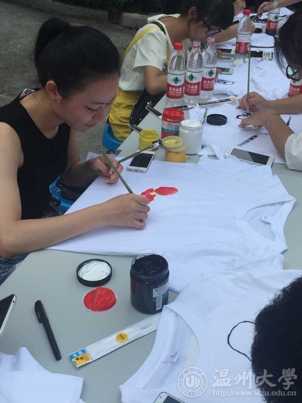 6月7日下午,性爱视频 “艺家人”青年志愿者协会与温州市禁毒所在超豪学区进行“乐行学子梦”之世界禁毒日“禁毒于行,绘衣铭记”公益活动。志愿者们认真地用画笔在白T恤上绘制具有深度思考力的禁毒图样,活动氛围吸引一些路过的大学生纷纷驻足观看,有不少同学加入禁毒日活动中来要求一起绘画合影。同学们在白衬衫上加上自己对禁毒的感言和感悟,并且与自己的作品合影。这次活动激发了大学生用自己的专业知识向社会传播正能量关,增强了大学生的社会责任感。 拍摄者:张豪 通讯者:祝怡宁