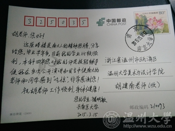 胡建南老师 座右铭:生活简单一点,工作尽心一点,心胸宽阔一点。 说辛劳是一种财富,那他就是富有的人。在校外,胡建南老师连续多年开设公益课堂向大众普及美术知识;在校内,多次带队学生实习,连续多年利用周末、寒暑假等休息时间开展各种形式公益课堂,义务指导学生参加省师范技能大赛。他那慈爱的笑声,满腔的热情,将无限的爱心在师生间传递。他用诗意的语言,精湛的技巧,培育着一批又一批的学生。孩子们因他而快乐,他因孩子们而自豪。