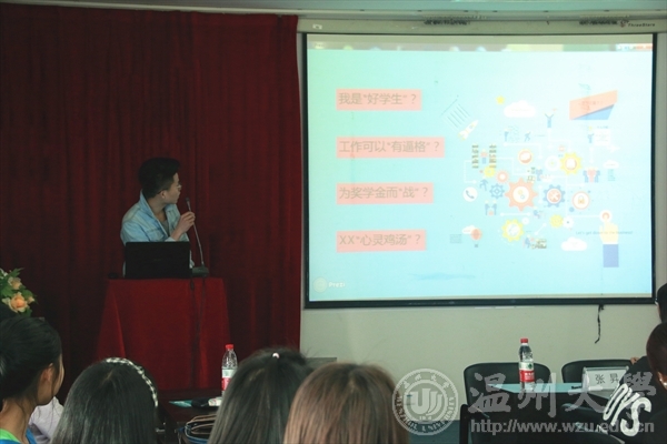 4月22日下午,以“端学风正青春”为主题的系列活动之五班十星经验交流会在2B4001举行。本次交流会由院团委学风纪检部举办,学生科辅导员黄迎迎、上一届“五班十星”获得者:道德风尚班13美术师范班班长、学习之星张昇、公益之星刘恺愫以及自强之星丁凯迪、纪检部全体成员以及13级14级各班班委参加了本次交流会。 首先由纪检部部长尤蔓琳介绍了此次活动的重要性与必要性,并详细讲解了“五班十星”评比的内容与形式。接着,获得上一届“道德风尚班”荣誉称号的13美本师范班班长为学弟学妹们做了班级成果汇报,精彩的ppt和生动的演讲展示了一个团结和睦、积极向上、成绩优异的班集体。他讲到参加五班十星评比,要发挥好班委的组织合作能力以及处理好班级同学个人的关系,班上同学在生活上要互相帮助,在学习上要互相监督,让每一个人都参与到优良学风的建设中来。然后,“学习之心”、“自强之星”和“公益之星”的获得者分别向大家展示了个人风采和优秀事迹,并耐心回答了同学们的提问。 最后,黄迎迎老师就本次交流会的内容做了总结,她希望班委们能够承担起建设良好班风的责任,让积极的班级面貌带动班级的每一位同学,希望各班级能够积极参加美院的“五班十星”评选活动,并争创校“优良学风班”、校“学习标兵”。