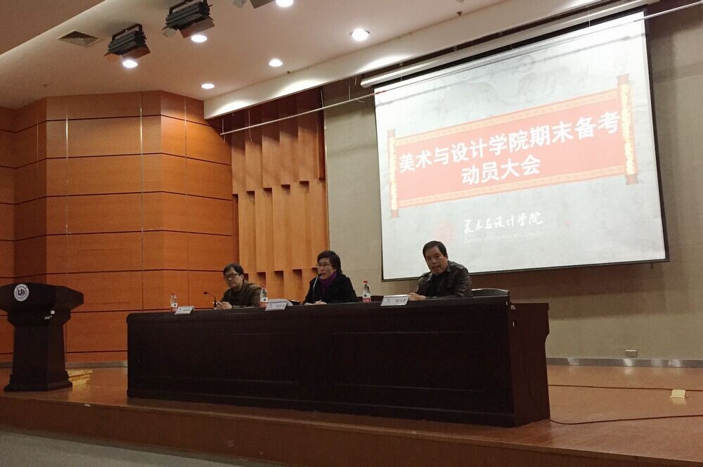 为了激励学生主动复习,自信迎考,诚信应考,营造良好考风学风。1月7日下午,性爱视频 在南校雁山厅举行了2014-2015学年第一学期期末备考动员大会。出席此次会议的有学院党总支书记郑彩莲、副院长蔡可群和副书记杨振海,以及全体大一新生与老生代表。杨振海副书记主持会议。首先,蔡可群副院长围绕学院“学风建设年”的实施背景,结合艺术专业的学习特点,从学习态度、学习方式与学习方法等角度阐述了学风建设在人才培养过程中的重要性,并强调考风是学风建设的集中体现,也是彰显公平竞争的具体体现。随后,郑彩莲书记针对期末备考与诚信考风做了严爱相济、语重心长的指导讲话。她指出,诚信作为新时期社会主义核心价值观的重要内容,是衡量个人品行优劣的道德标准之一。她结合具体案例从考风形势预判、考风违纪预案处置、考风信息及时传递、诚信考风人品考量等方面强调了“诚信考试是硬道理”的理念。她强调党支部、团委、班委要做好诚信考风的宣传工作,更要发挥模范带头作用,以良好的考风促学风。她希望同学们能够自觉遵守考场纪律,让考场成为一片公平角逐、展现实力的净土。她更希望能够看到一个大家都你追我赶,求知若渴的美院,而每一个置身其中的人都能感到欣慰和自豪。最后,杨振海副书记勉励同学们在期末考试中,不仅要交出专业知识的水平之卷,更要交出诚信的品行之卷。