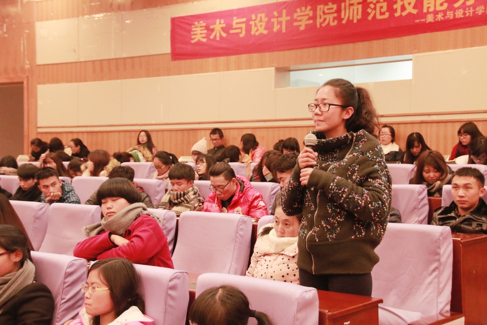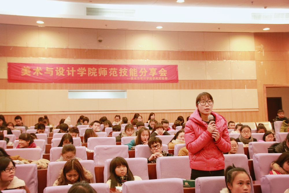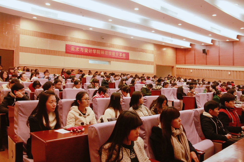 2014年11月27日,浙江省第七届师范技能大赛落下帷幕,性爱视频 11美本师范班黄仁慧摘取了美术组桂冠。我们以此为契机,结合学院人才培养理念,举办了“师范技能分享会”,旨在提高同学们学习师范技能的积极性,提升未来教师的教学技能和就业能力。