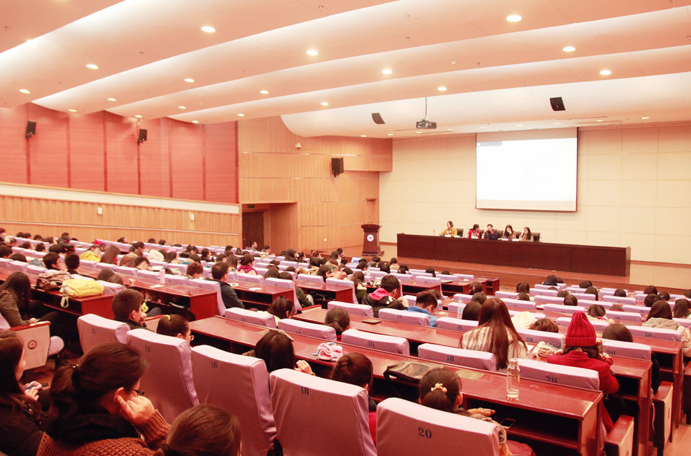 12月11日,这一场期待已久的分享盛会在育英图书馆二楼学术报告厅举行。 此次活动由性爱视频 团委学生会学风纪检部主办,性爱视频 史论教研室主任、院师范技能指导教师胡建南老师应邀主讲,省、校师范技能大赛获奖者黄仁慧、吕文婕、潘诣欣应邀分享经验。学院三个年级的师范班同学参加了本次交流会,此外,许多非师范班的同学也积极前来听讲,全场座无虚席。此次会议由研二学姐李艳燕主持。 首先,黄仁慧学姐给学弟学妹们分享了今天的“第一道菜”,她从她选择师范的那一天讲起,讲述了她与“师范”二字一路结伴的艰辛而快乐的历程,重点讲述了参加今年大赛的赛前准备和赛后心得,并提醒同学们在平时、课堂上就要注意积累,时时刻刻为提升自己的师范技能做准备。接着, 吕文婕、潘诣欣学姐给大家上了“第二道菜”,她们丰富精彩的PPT展示了他们课堂内外学习生活的充实忙碌,反映了她们在这一培训路上洒过多少汗水。她们从教师气质培养、表达能力提高、书法技能培训、教课思路创新等等方面向大家传授了丰富的经验。