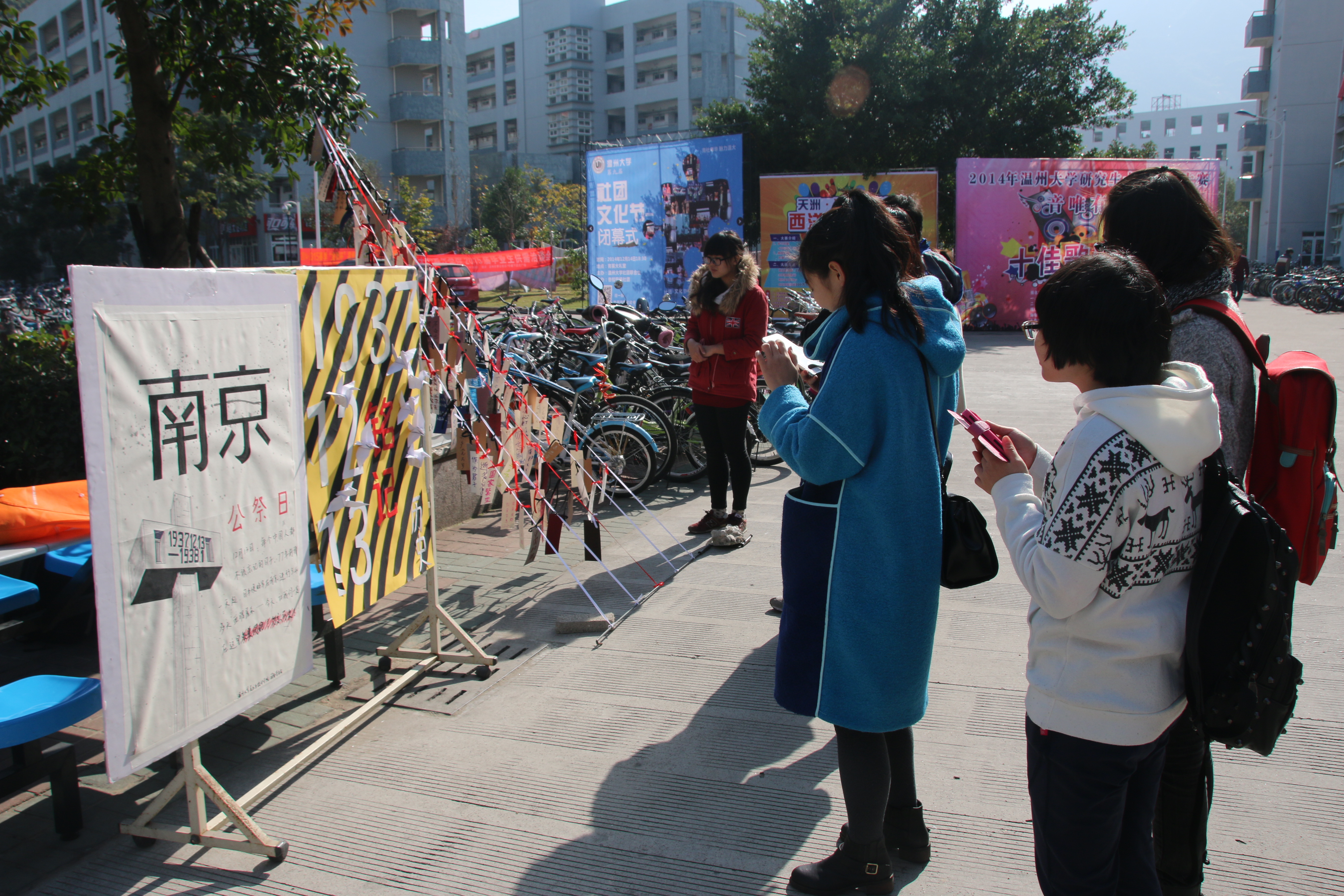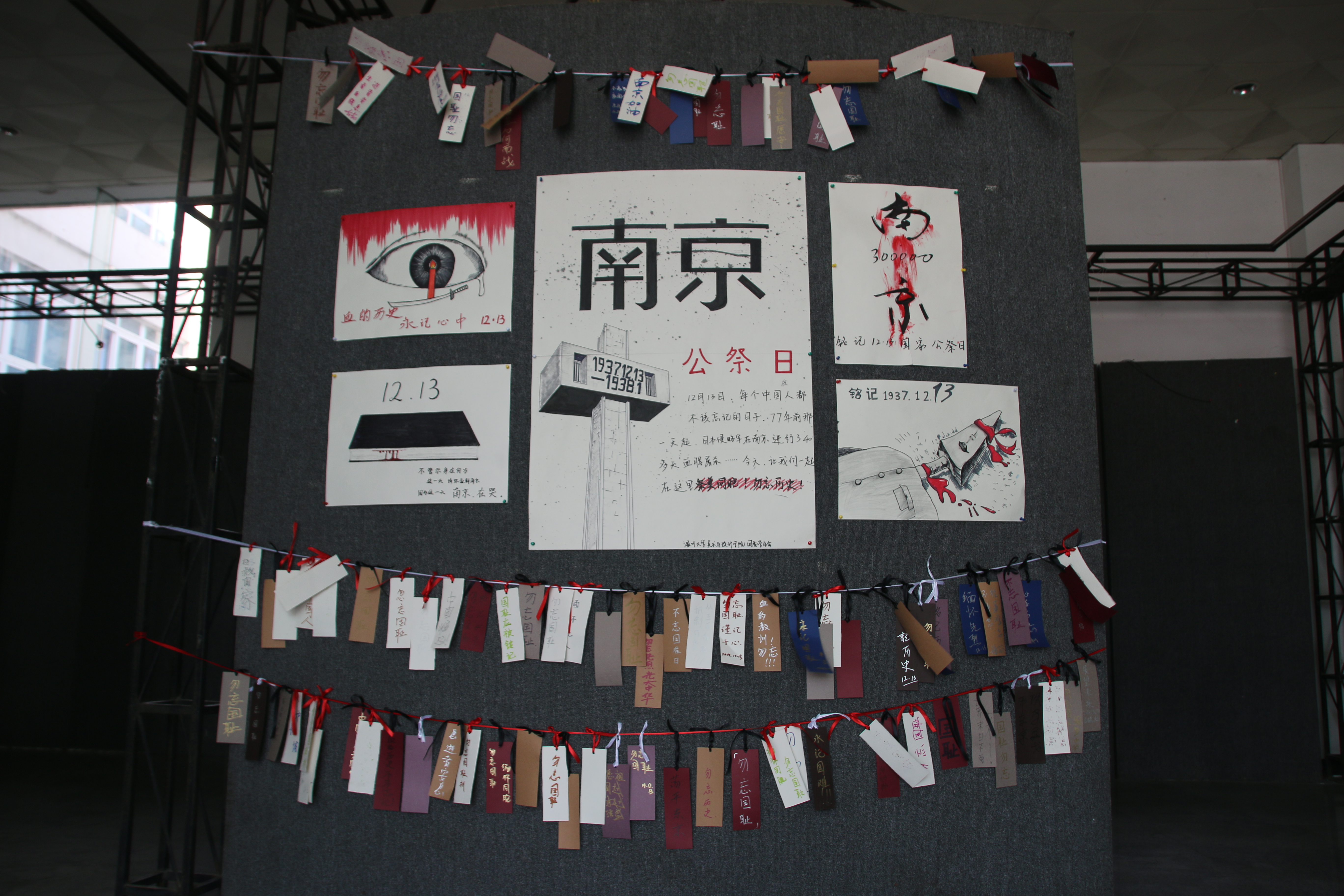 12月13日当天,性爱视频 团委学生会创业就业部与学风纪检部为响应本次国家公祭日,在超豪学区开展举办了祭语公祭悼念活动。本次活动展出了两张手绘悼念大海报及多张手绘宣传公祭漫画,同时开展了温大学子亲手写寄语、挂祭语活动。一同为南京大屠杀遇难人民哀悼,缅怀抗日先烈,勿忘国耻,铭记历史。