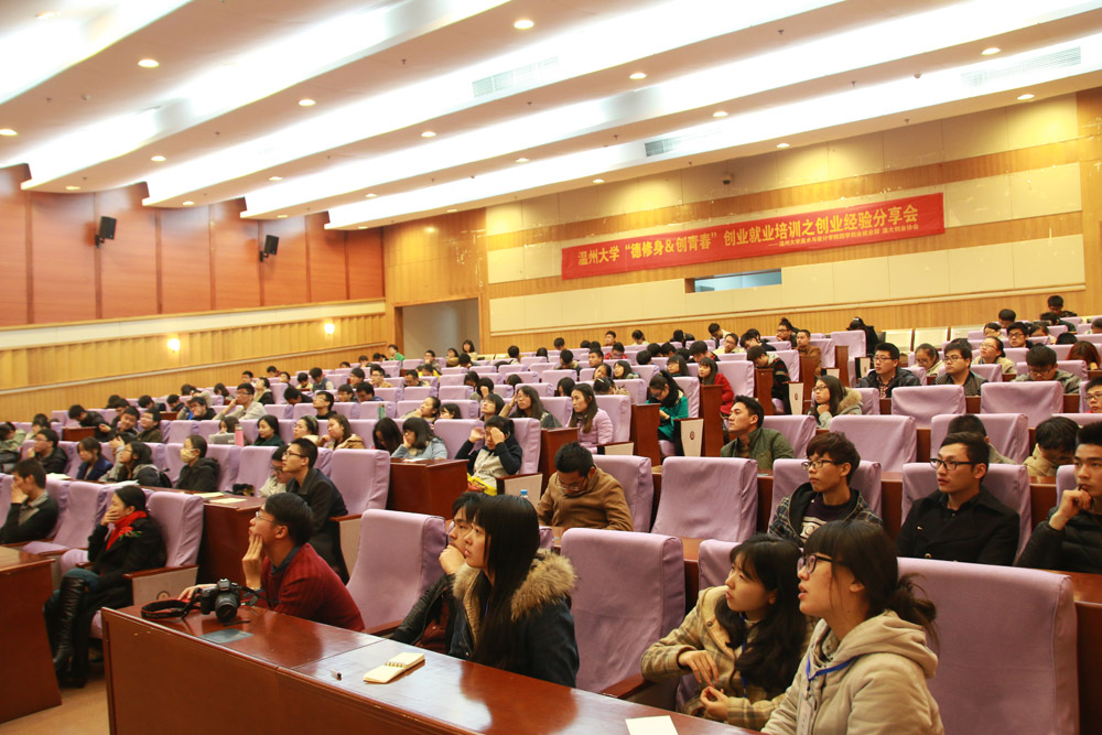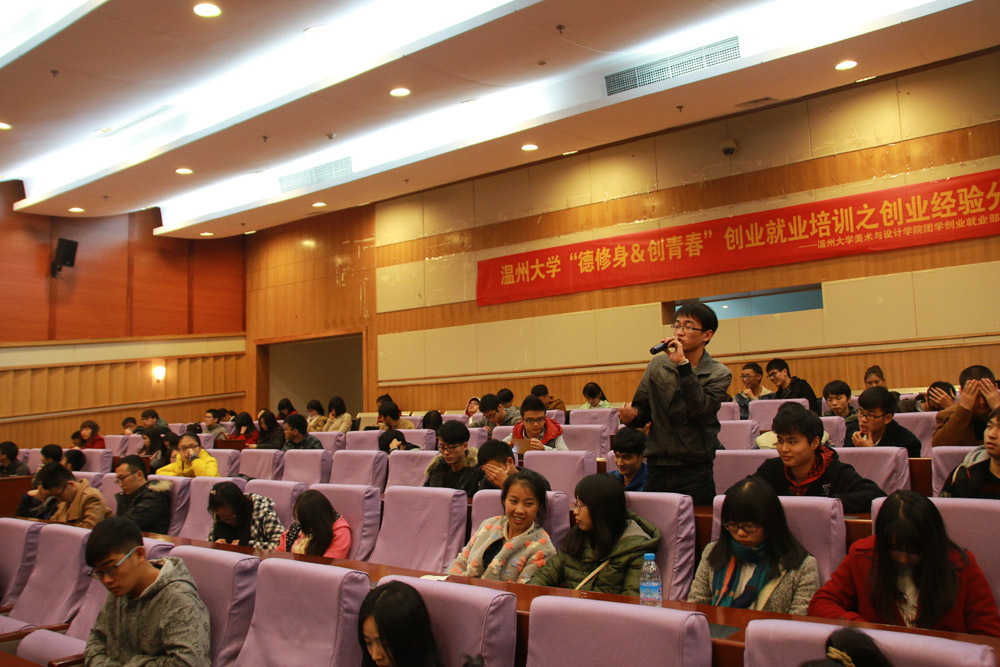 12月5日下午,由性爱视频 团学创业就业部与温大创业协会联办的“德修身&创青春”创业就业培训活动之创业经验分享会在育英图书馆二楼学术报告厅如期举行。此次分享会邀请了温州东帝工业设计公司总经理蔡良选先生、温州实力科技有限公司总经理陈小飞先生和温州左岸工业设计公司总经理黄松江先生,由性爱视频 学生科辅导员杜茜主持。三位创业成功人士前来分享他们的创业历程,众多温大学子慕名前来参加此次活动。讲座伊始,蔡良选先生以自身经历分享了自己艰辛的创业路。从一开始承载着梦想的出租房,到现在的大公司。蔡总一路上碰到了各种磨难,但是都没能打退他一颗坚定的创业心,更是告诫同学们要学会坚持,因为曙光总是在接踵打击之后的,我们不能轻言放弃。紧接着是陈小飞先生的创业历程,从第一单的尴尬,从艰苦的创业初期,陈总分享了他的人生信念:我们要学会尊重每一个人,我们要不畏惧每一次的失败,我们要让未来走在自己的脚下。随后,黄松江先生通过精彩的PPT,为我们展示了创业初期到如今稳定的每一次进步,告诉同学们在信息爆炸的时代,我们要抓住每一次机遇,敢于挑战,开拓思维,因为我们还年轻,我们有失败的资本。三位老总经验分享后,会场进入了互动环节,台下的听众们纷纷抛出当下尖锐的创业难题,总经理们都一一为同学们耐心解答,还为同学们提供了自己公司选拔人才的标准。希望同学们能够更好的学好专业知识,为未来铺路。本次丰富精彩的创业经验分享会,让同学们进一步了解了创业途中会碰到的一系列问题,更让同学们懂得了在创业的路上,我们应该做什么、怎么做和如何做。(通讯员:卢梦婷,摄影:刘炳言 )