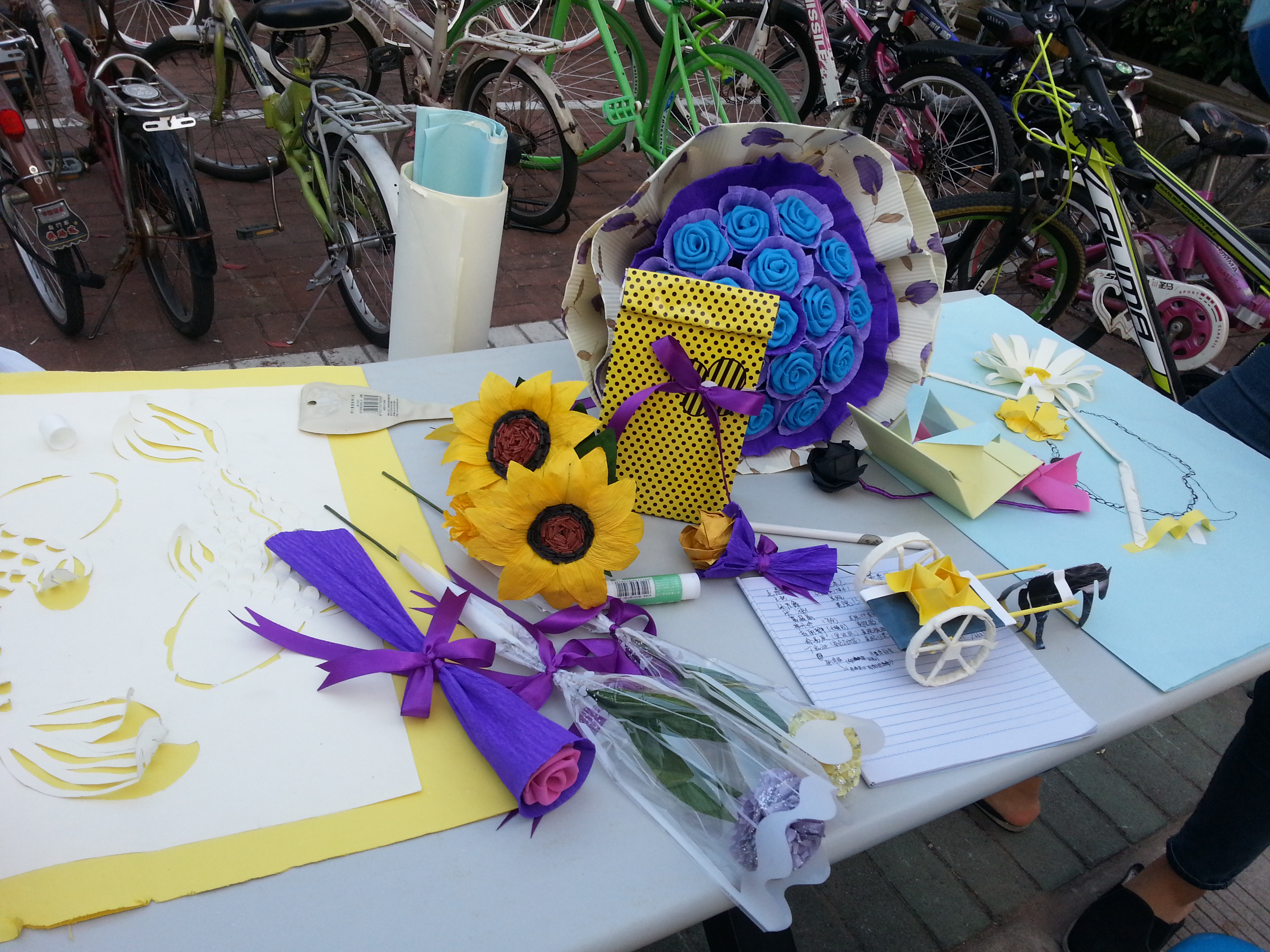 比赛在下午4时准时结束,同学们陆续交上自己的纸艺作品,纸艺作品样式新奇多样,让人眼花缭乱。