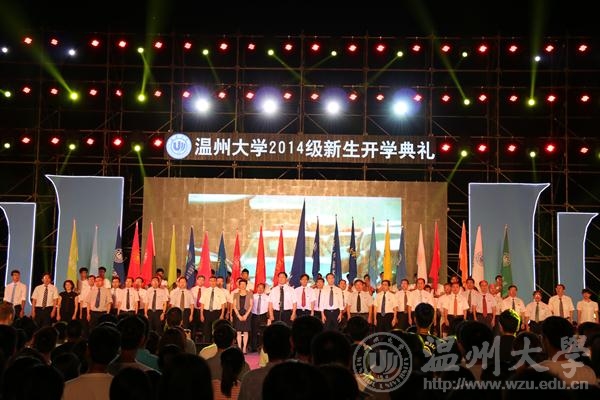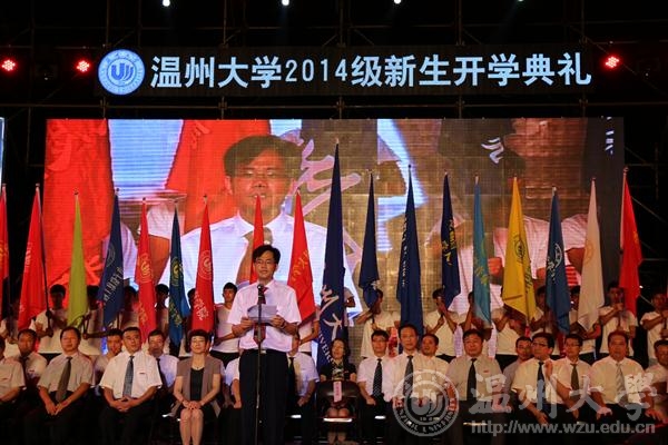 典礼上,教师代表、人文学院俞为民教授告诉新生,实现目标、达成理想的秘诀在于”有志气,要勤奋”,谆谆教诲中包含着老师对学生的殷切希望和真诚祝福;而86届校友、温州市第三中学校长吴步旭老师以亲身经历,同窗纪事鼓舞新生”学校提供了一个平台,真正的努力要靠自己”;2014级新生代表,国际合作学院钱燕飞感叹道:”在老师们的谆谆教诲下,我们必将不忘初心,读书与行路并存,常与良师益友扺掌而谈。今天是大学军训的结束,也是人生辉煌的时刻。”