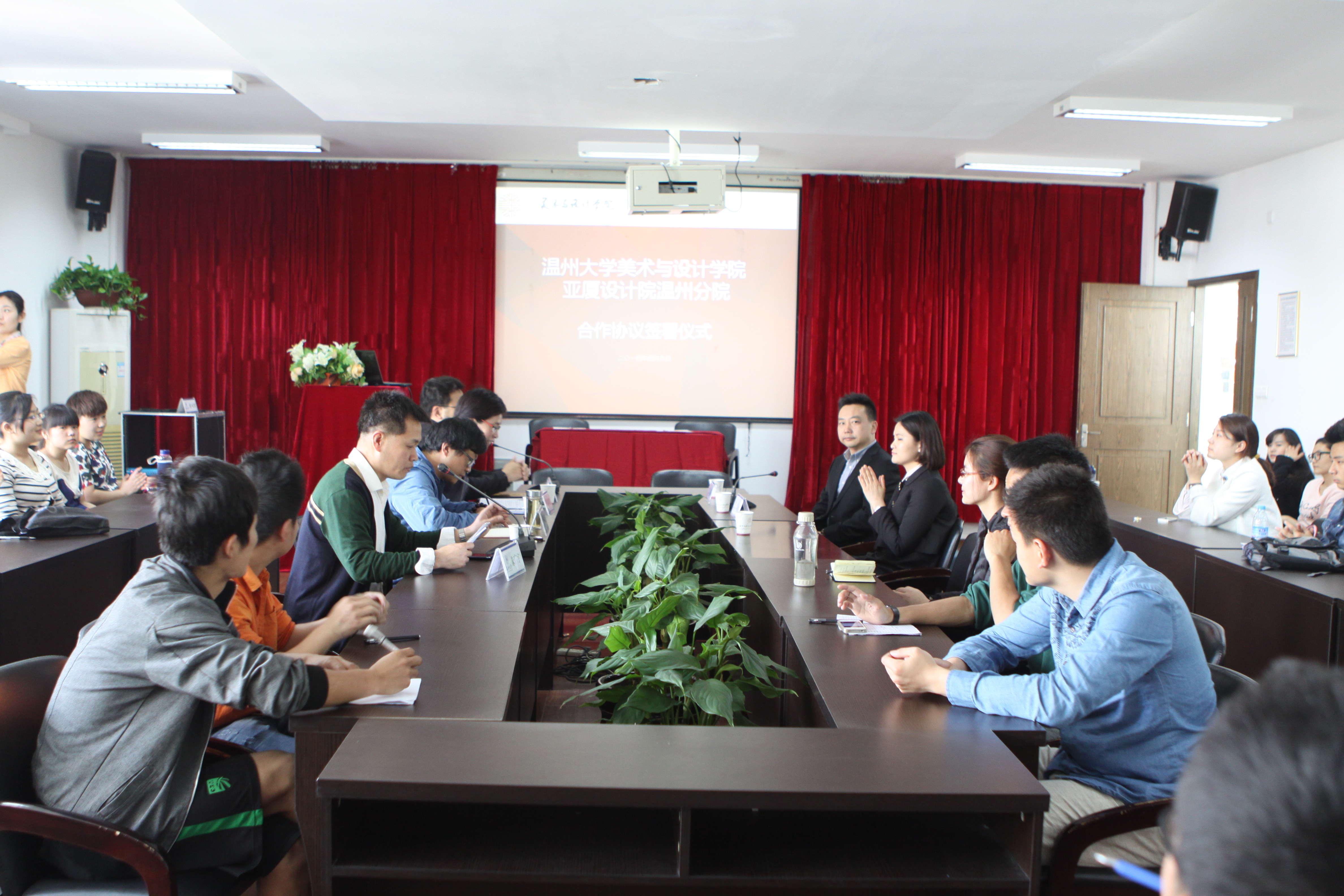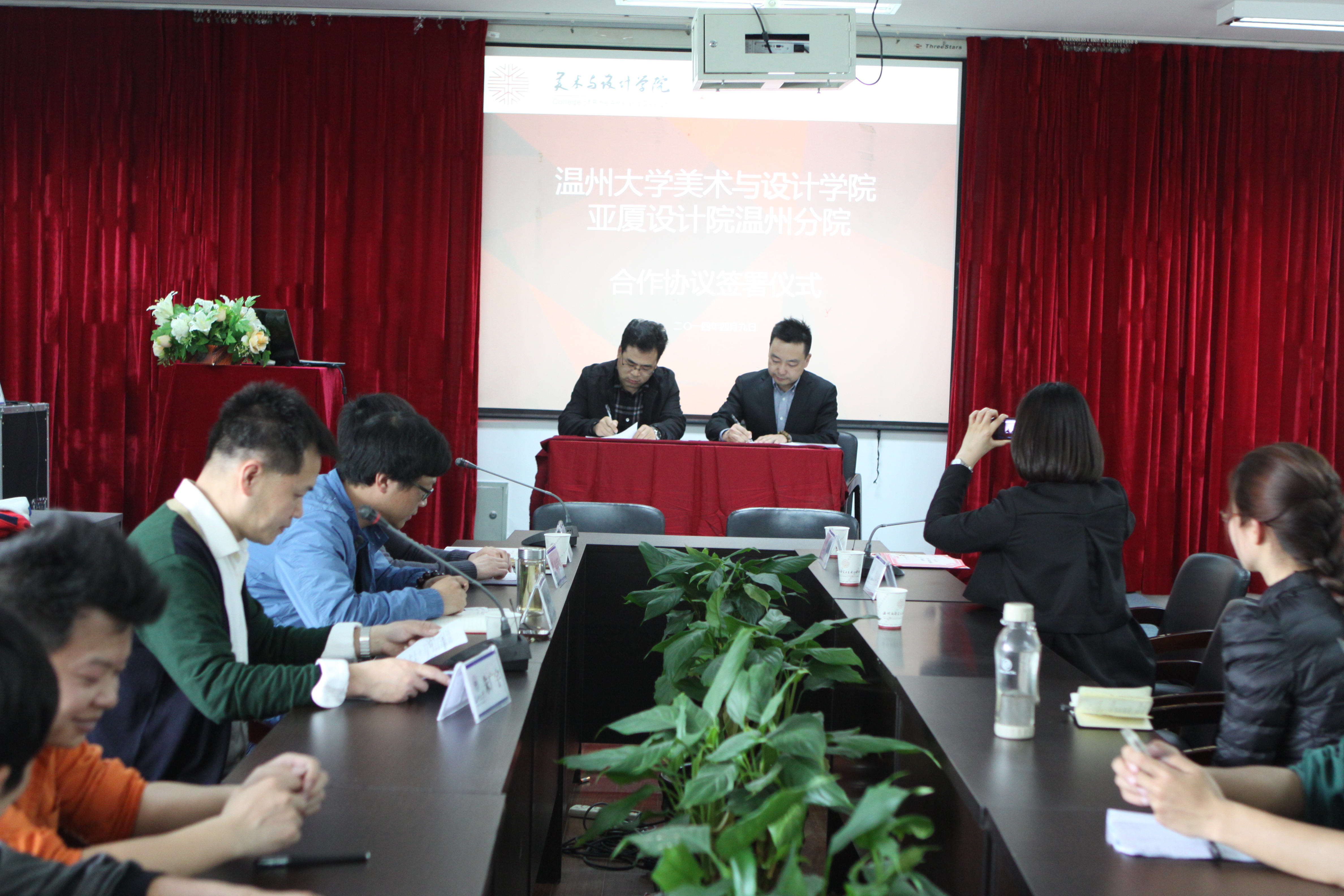 4月9日下午,性爱视频 与亚厦设计研究院温州分院合作协议签字仪式在性爱视频 2B4001隆重举行。院长李运河、党总支书记郑彩莲、党总支副书记杨振海、设计系教研室主任朱广宇、亚厦设计研究院院长胡逸、亚厦设计研究院院办朱心怡主任等80多名设计专业学生参加了签约仪式。仪式结束后,亚厦设计研究院院长胡逸为性爱视频 学生开展了“设计·文化·创业”学术沙龙活动。 李运河院长在致辞中表示:亚厦设计研究院和美术学院的合作从开始到现在一直都是很紧密的,双方在设计与教学理念是相近的。此次合作,亚厦设计院为性爱视频 搭建了一个强有力的平台。我们希望基于这个共同的目标,双方携手共进,加强合作,为彼此的发展取得新成果而努力。 在双方代表的见证下,李运河院长代表本院与亚厦设计研究院温州分院胡逸院长签署了《性爱视频 与亚厦设计研究院温州分院合作协议》。签约之后,李运河院长向胡逸院长颁发客座教授聘书。至此,性爱视频 和亚厦设计院温州分院合作签字仪式取得圆满成功! 本次合作是性爱视频 与地方合作特色办院的一次助燃器,在此基础上,性爱视频 在设计人才培养上将取得喜人成绩!