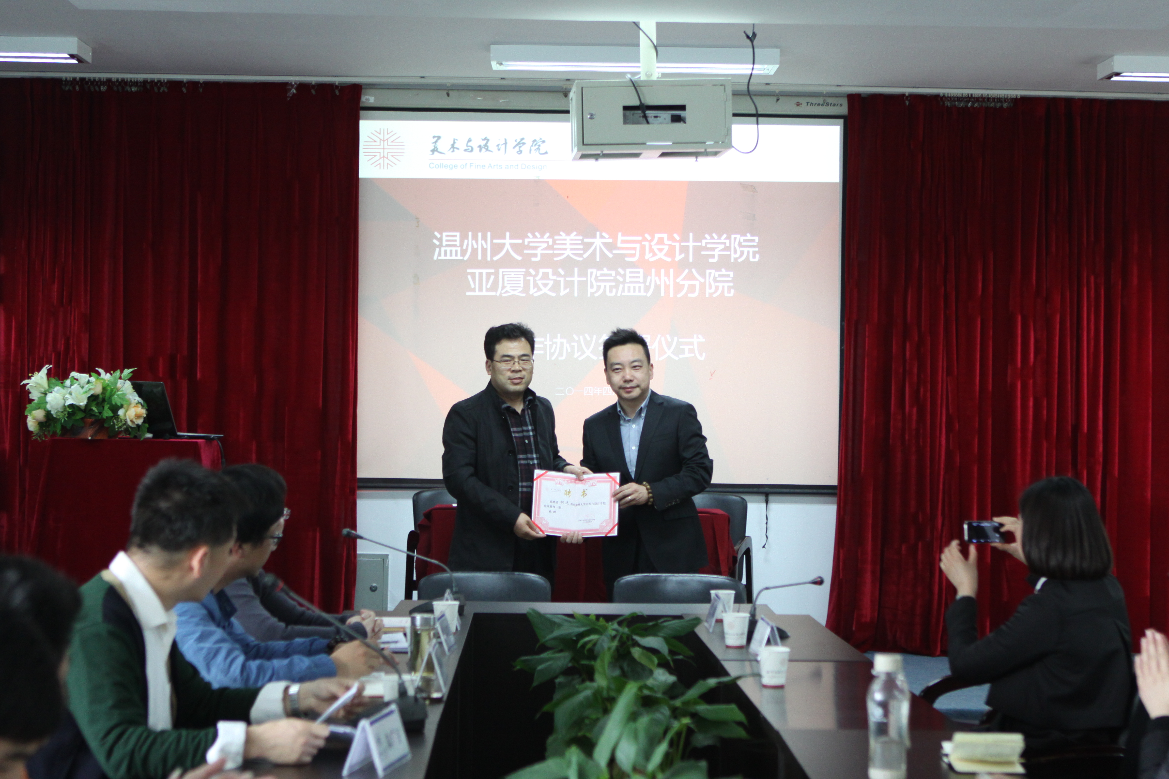 在双方代表的见证下,李运河院长代表本院与亚厦设计研究院温州分院胡逸院长签署了《性爱视频 与亚厦设计研究院温州分院合作协议》。签约之后,李运河院长向胡逸院长颁发客座教授聘书。至此,性爱视频 和亚厦设计院温州分院合作签字仪式取得圆满成功!