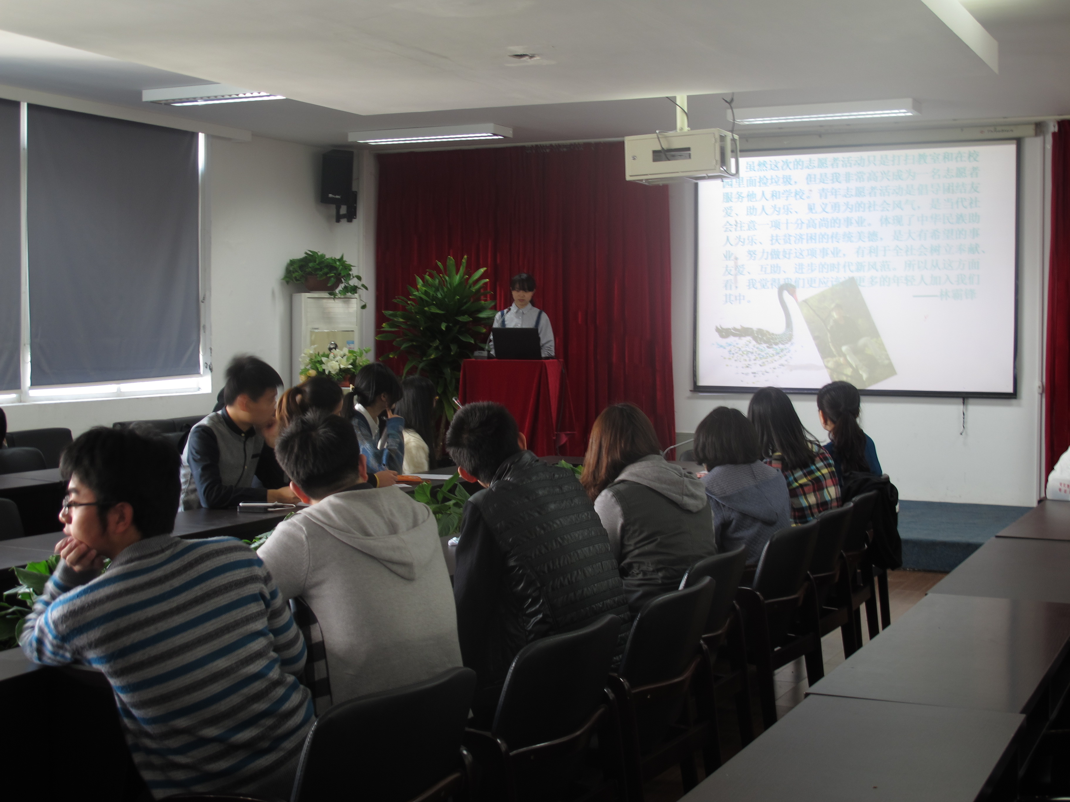 为传承和弘扬雷锋精神,展现当代大学生的文明风貌。3月22日下午,性爱视频 “艺家人”青年志愿者协会在2B-4001开展了以雷锋月活动为主题的ppt展示评比,学院辅导员杜茜老师和青协副会长陈周红、冯瑜瑜担任评委参与了此次活动。