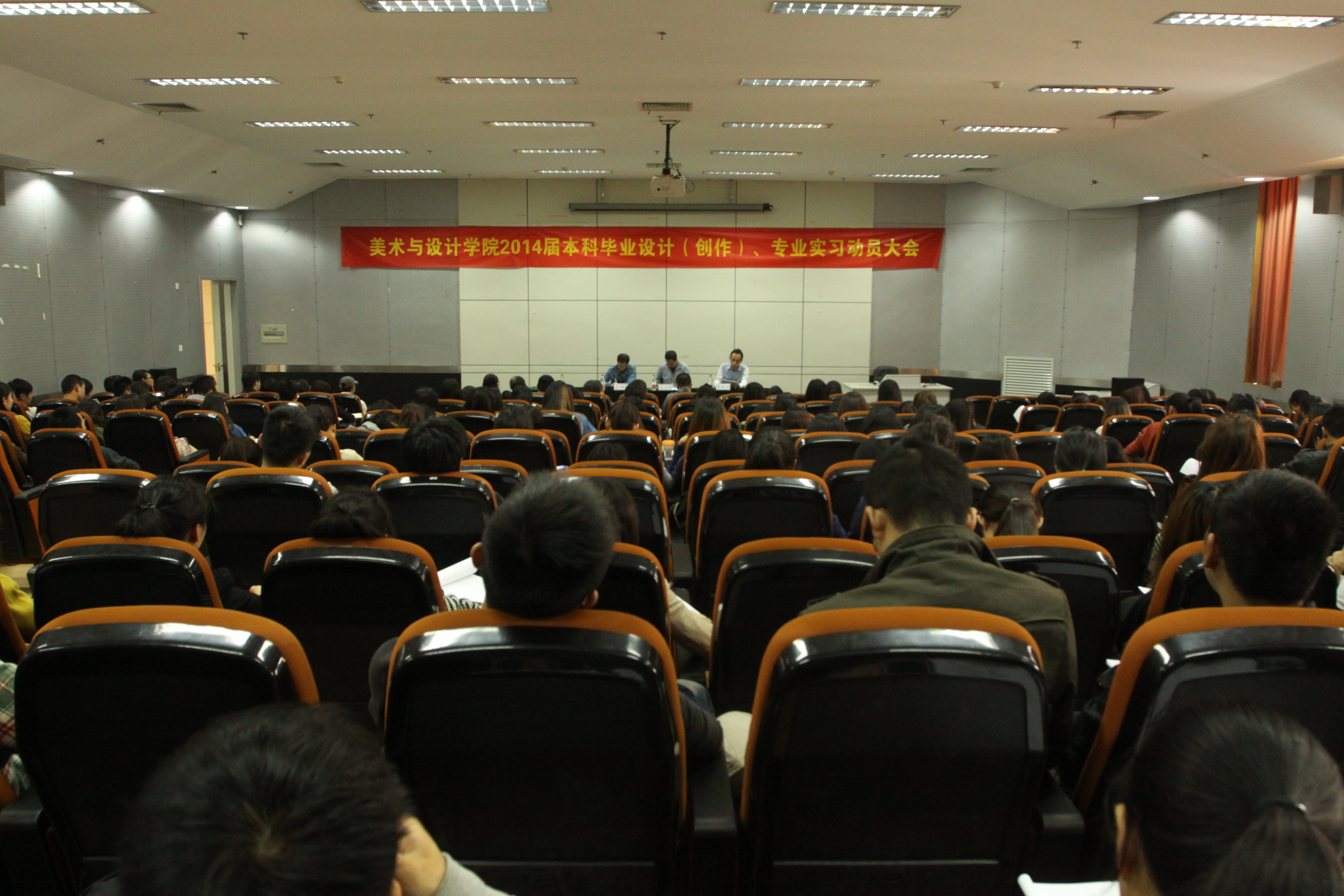 为顺利开展2014届毕业设计工作,11月8日上午,性爱视频 2014届本科毕业设计(创作)、专业实习动员大会在学校会展中心叶适厅举行。学院副院长蔡可群老师,副书记杨振海老师,教学科邹青老师,及美术、设计、服装三个系的系主任、各位毕业设计指导老师及全体14届本科毕业生参加了会议,会议由邹青老师主持。